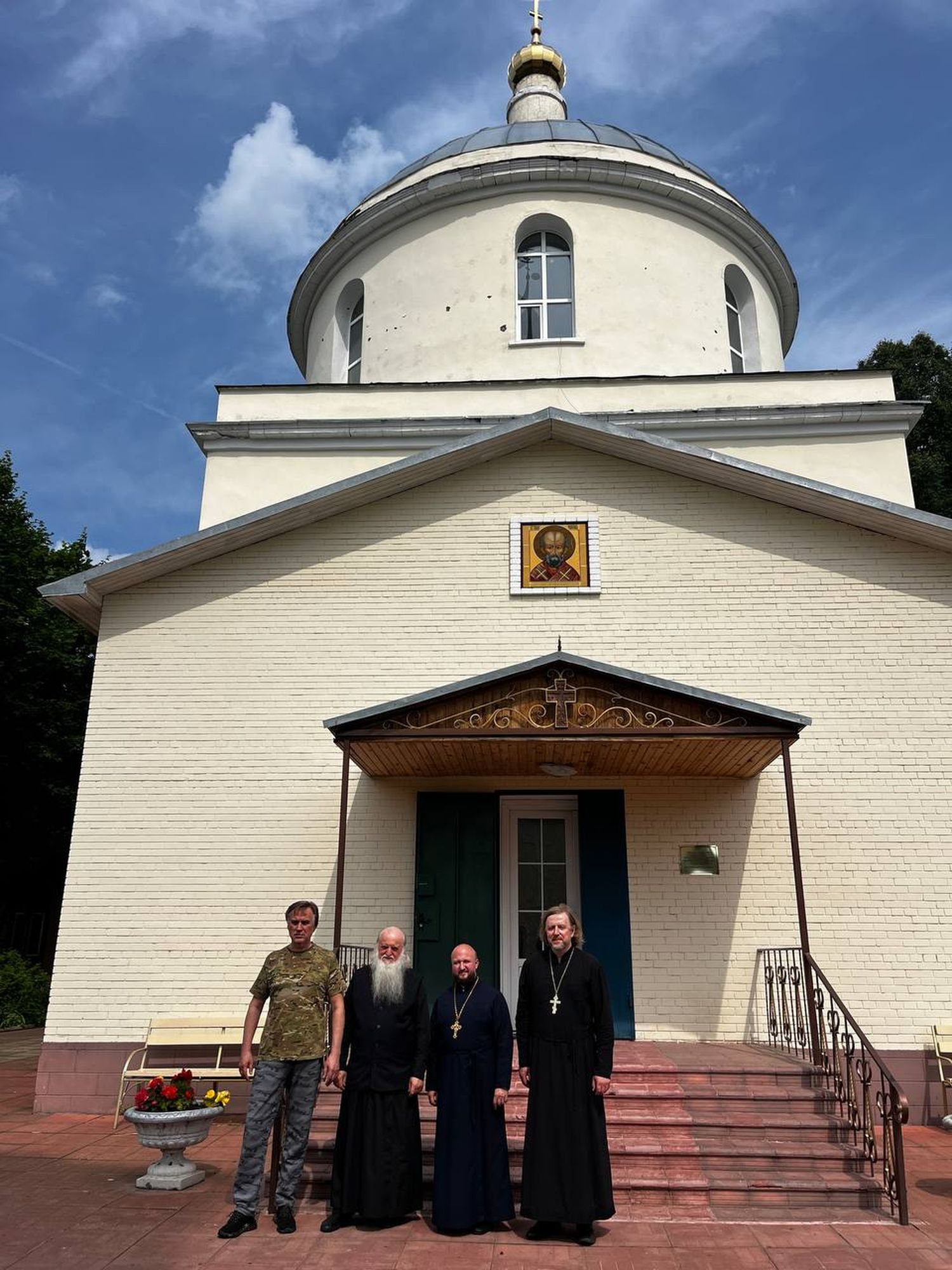 Затем на территории Никольского храма деревни Большая Дубна отец Андрей ознакомился с ходом подготовки к Великому освящению храмов, обсудил с настоятелем игуменом Гермогеном (Иониным) и благотворителем Валерием Ивановичем Артюхиным организацию предстоящего архиерейского визита Управляющего Балашихинской епархией епископа Балашихинского и Орехово-Зуевского Николая.