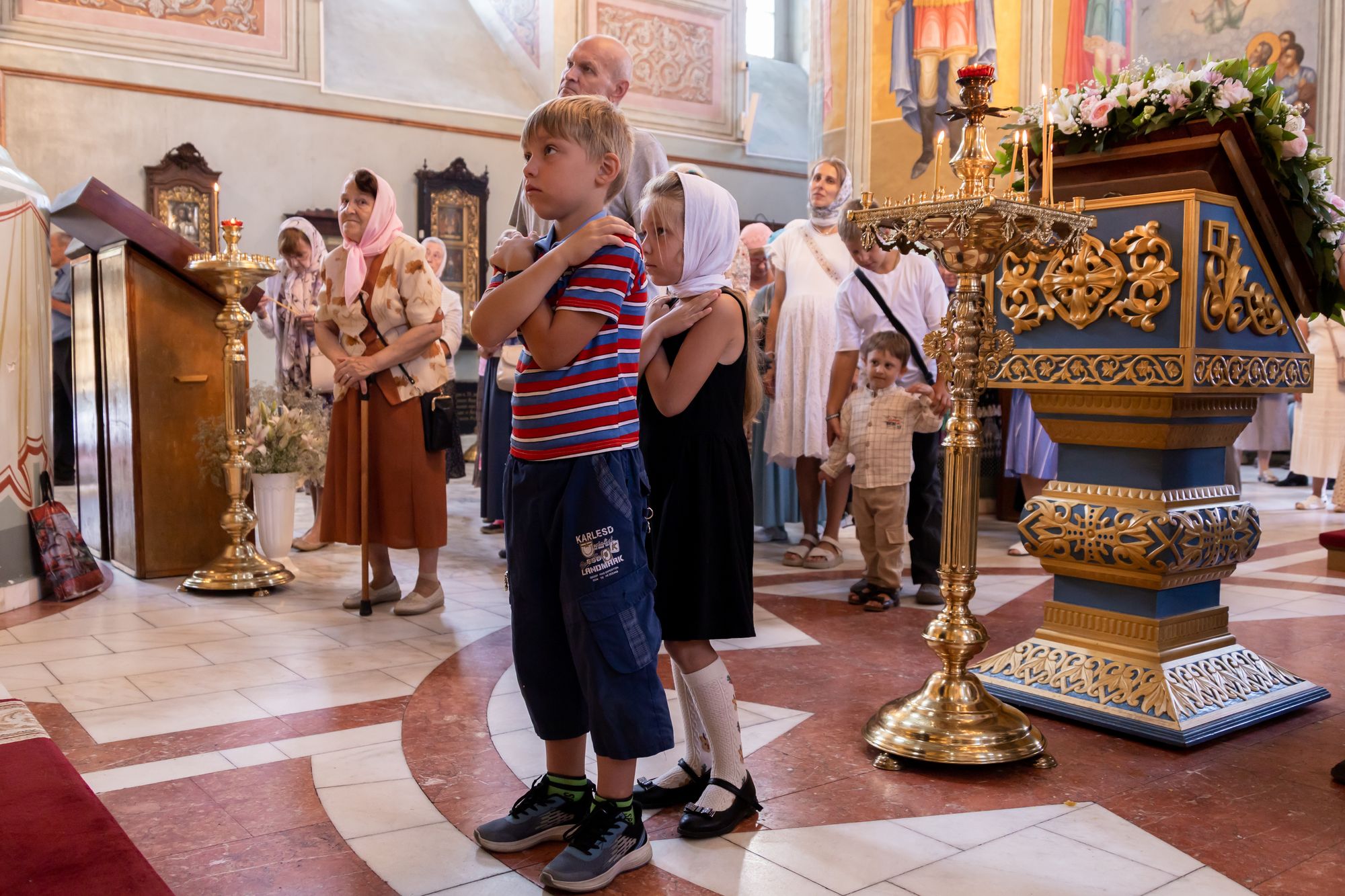 Для прихожан у стен Тихвинского храма было организовано чаепитие.