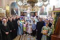 По окончании Литургии был совершён крестный ход и возглашены уставные многолетия, после чего отец настоятель поблагодарил Владыку Николая за совершённое богослужение и передал ему сувенир, сделанный воспитанниками православной гимназии «Ковчег».