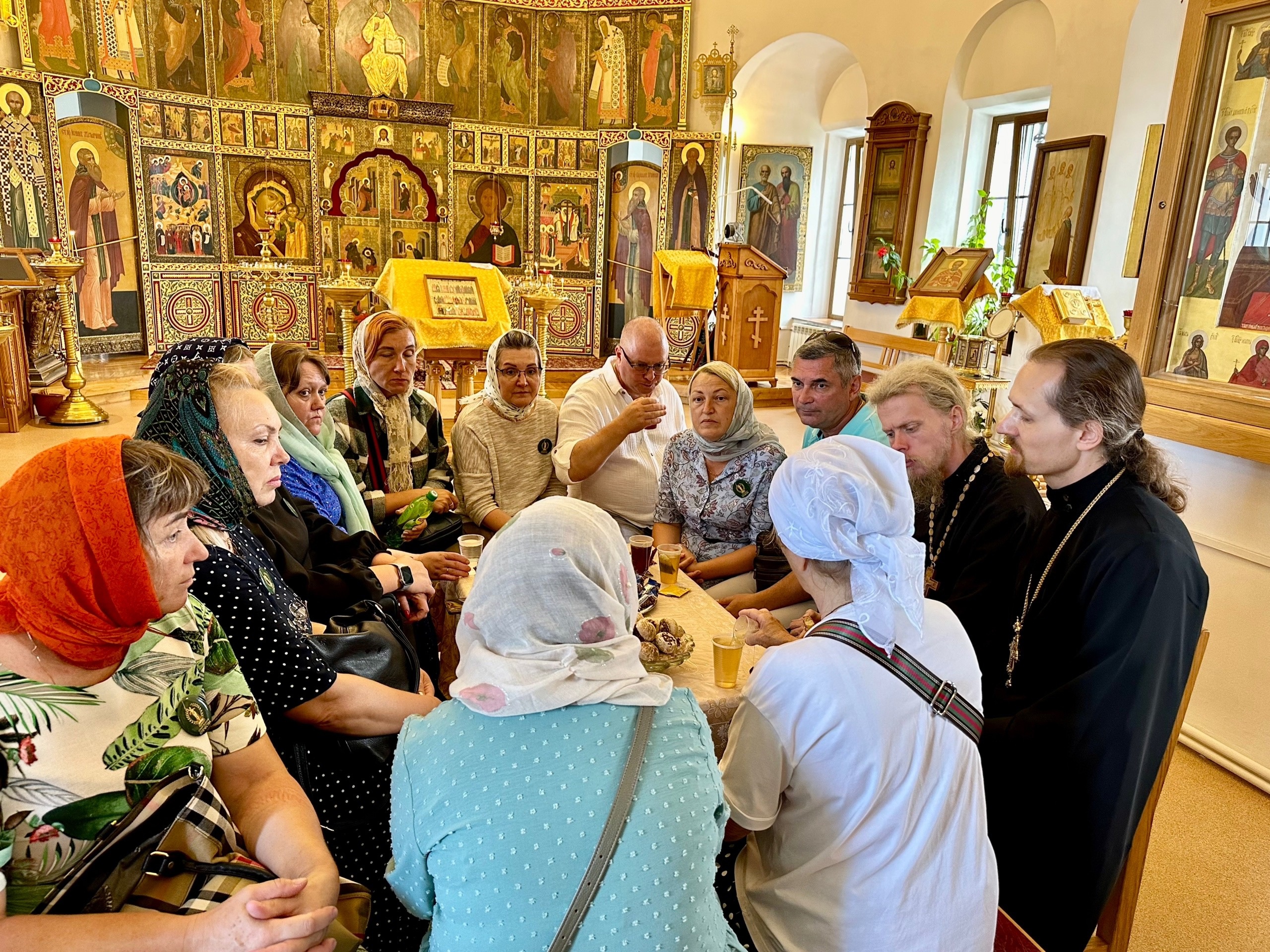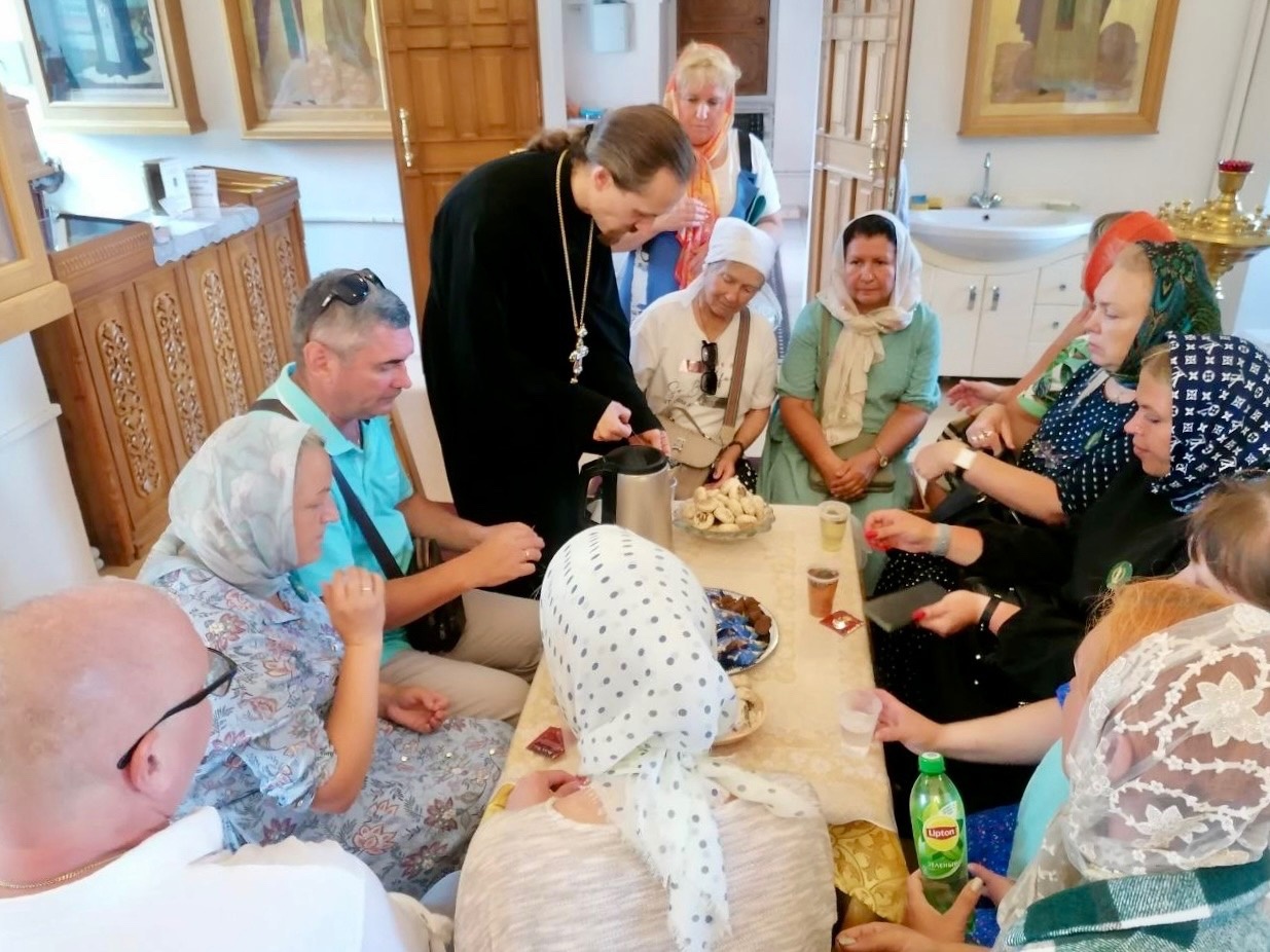 20 июля Крестовоздвиженский храм г. Коломна посетила группа семей участников СВО. Гости поднялись на колокольню и в верхний Никольский храм, а затем было организовано чаепитие во время которого настоятель иерей Иоанн Бакушкин отвечал на их вопросы. Также всем гостям были вручены сладкие подарки.