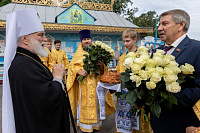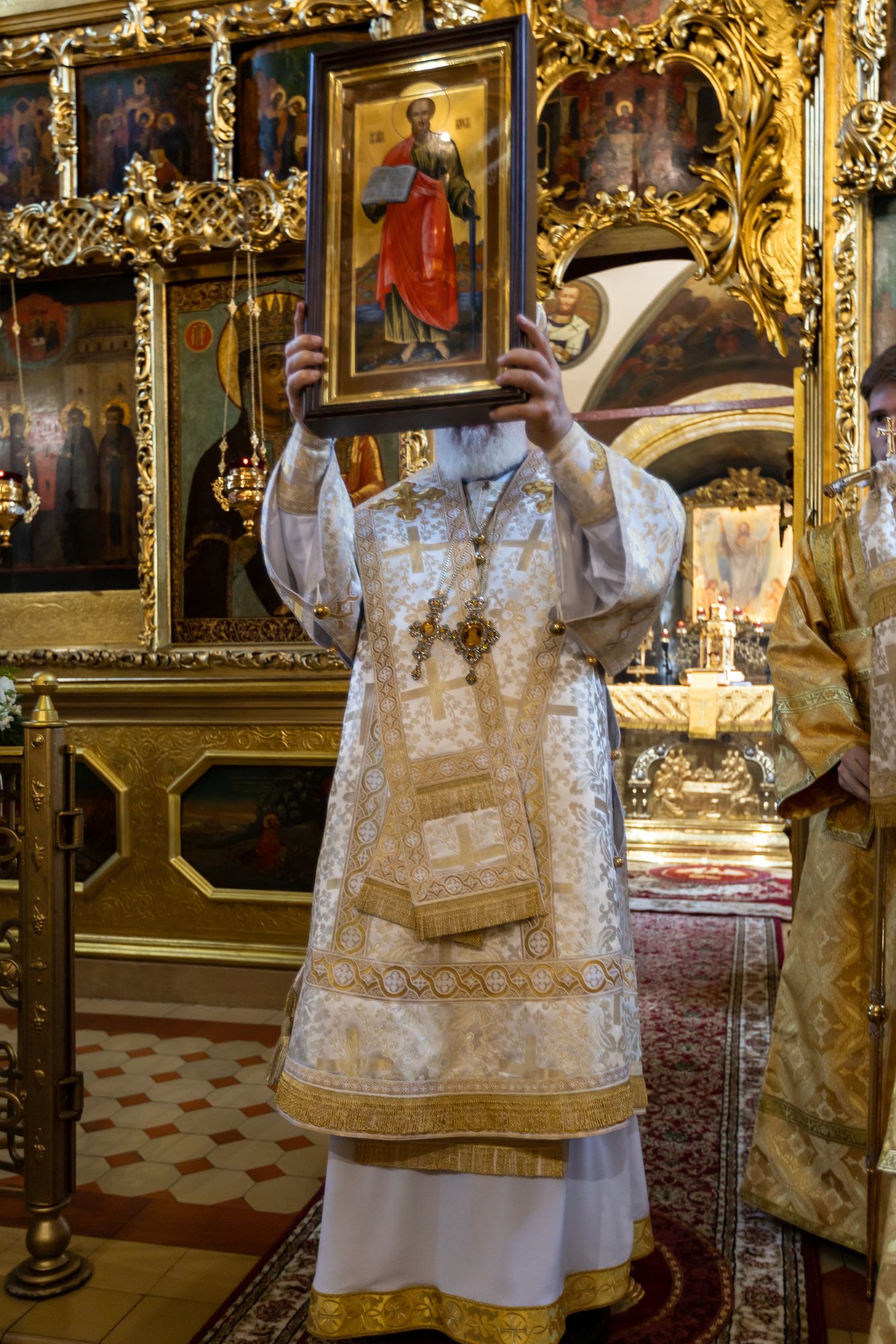 Настоятель поблагодарил Владыку митрополита за совершённое богослужение и преподнёс в дар икону святого апостола Павла, небесного покровителя архипастыря.