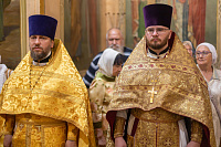 Его Высокопреосвященству сослужили: благочинный 3-го Коломенского округа иерей Александр Сирин, настоятель храма иерей Виктор Волков, настоятель Свято-Троицкого храма (на Репне) города Коломны иерей Василий Нелидкин и клирики храма.