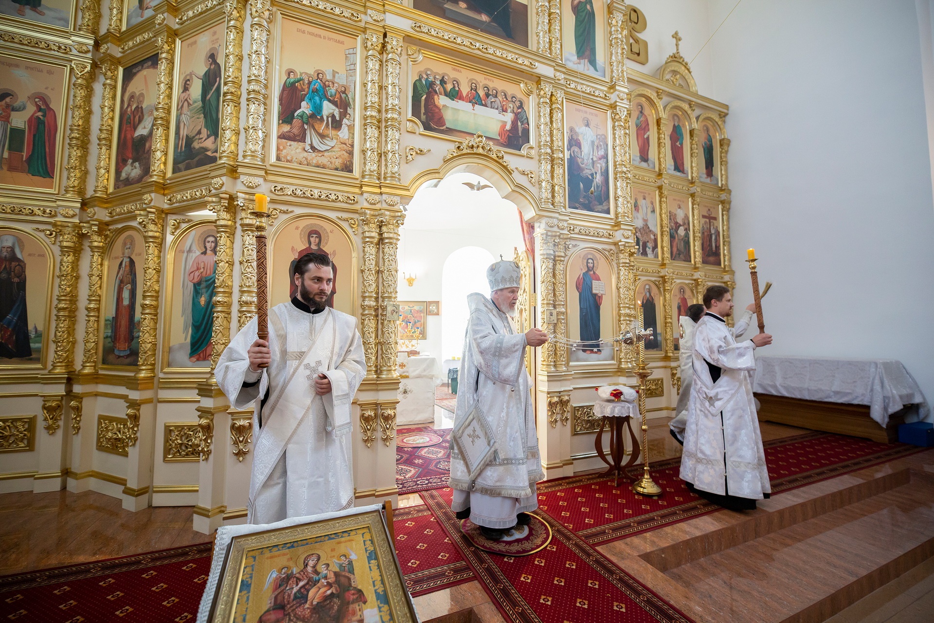 По окончании Литургии отец настоятель поблагодарил Владыку Николая за совершённое богослужение и преподнёс ему икону сорока мучеников Севастийских.