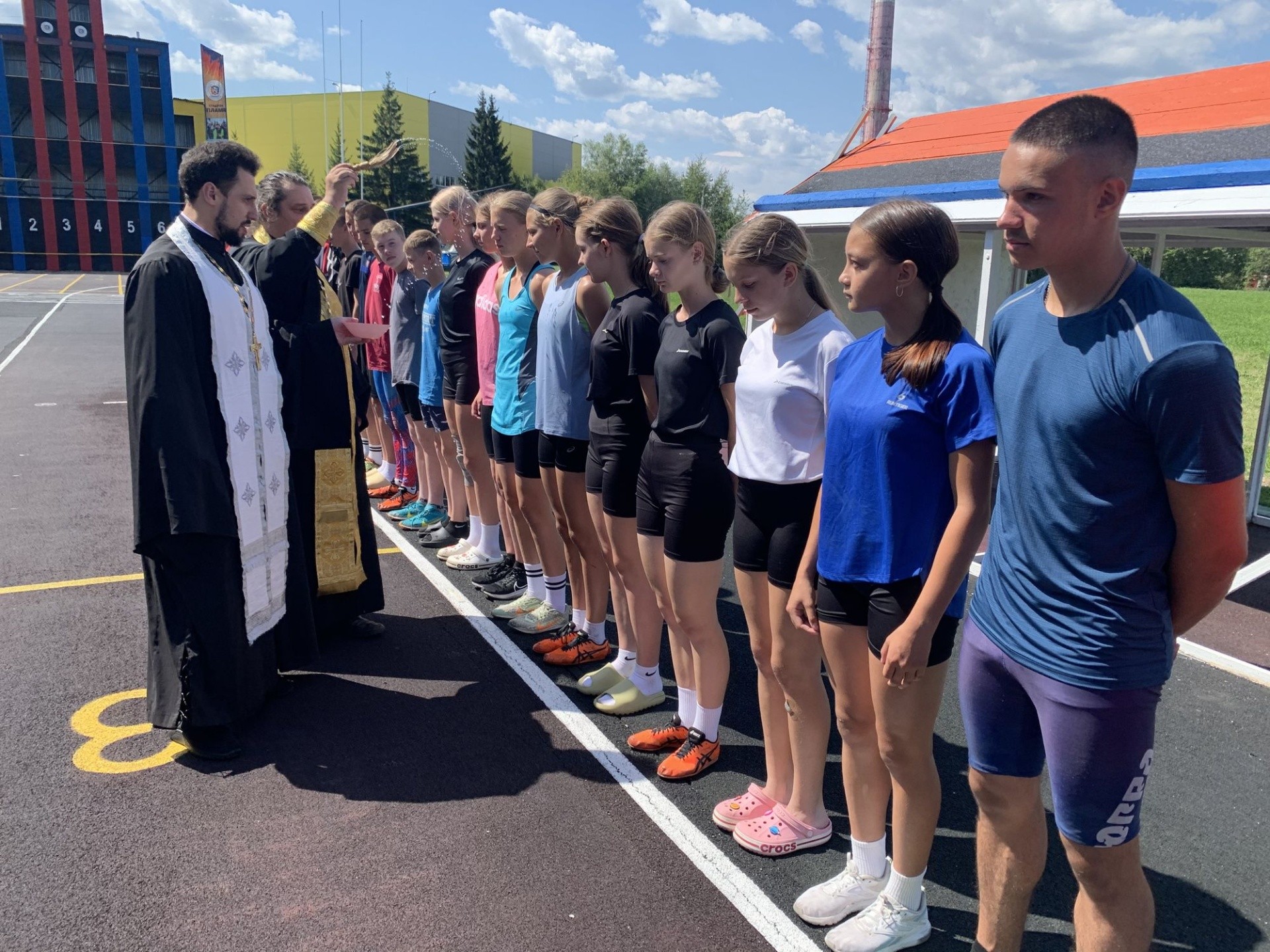 Священнослужители обратились к собравшимся с приветственными словами, благословив спортсменов на соревнования, а также окропили святой водой присутствующих.