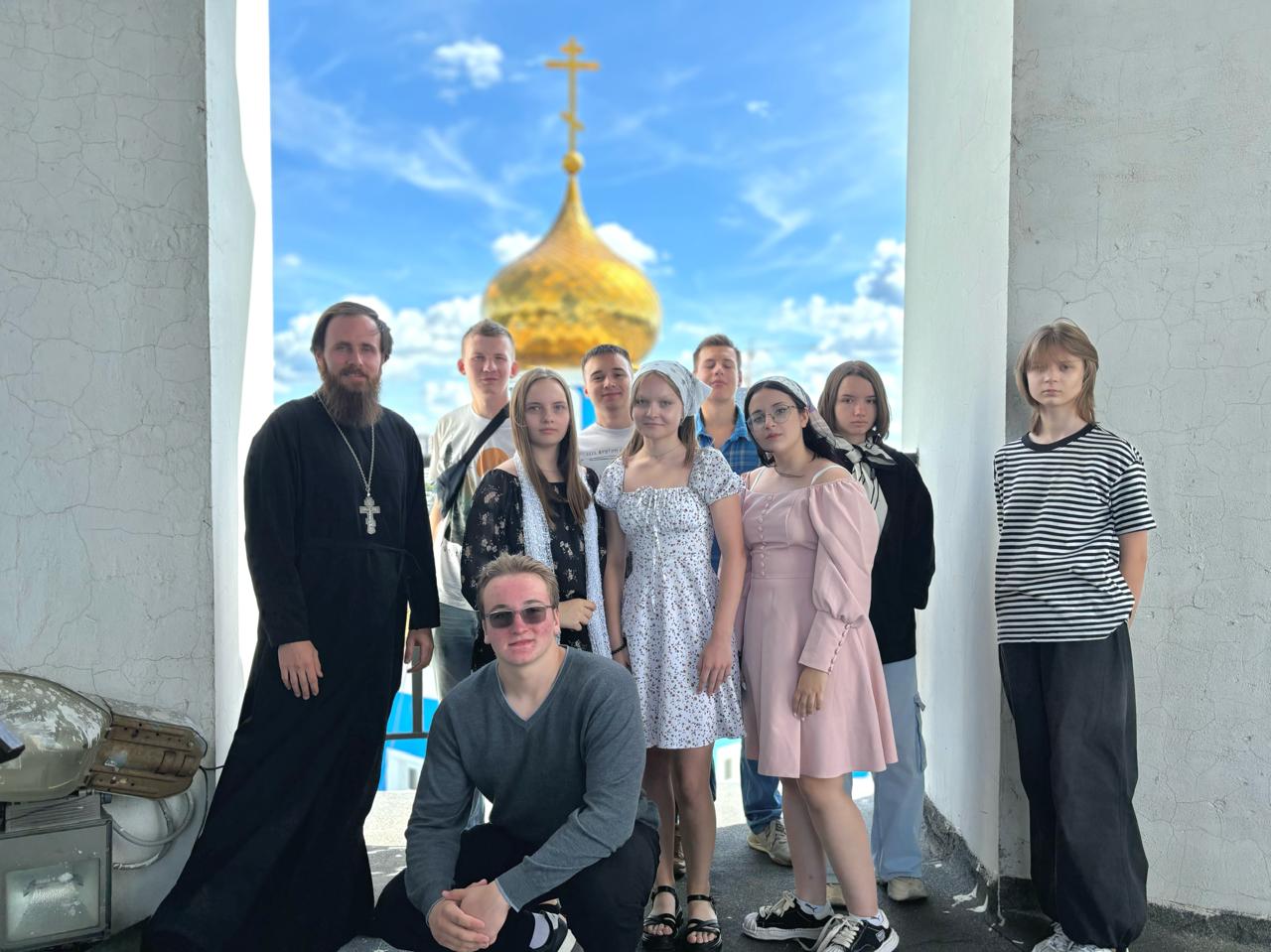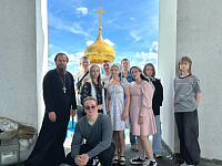 27 июля в храме Владимирской иконы Божьей Матери состоялась встреча активистов молодежного центра «Импульс» со клириком храма иереем Артемием Матиенко. Встреча была приурочена к Дню Крещения Руси, священник провел экскурсию для ребят по храму; познакомил их с историей Владимирской церкви, показал основные святыни, рассказал об азах Православной веры. В конце встречи ребята поднялись на колокольню и сделали общее фото на память.