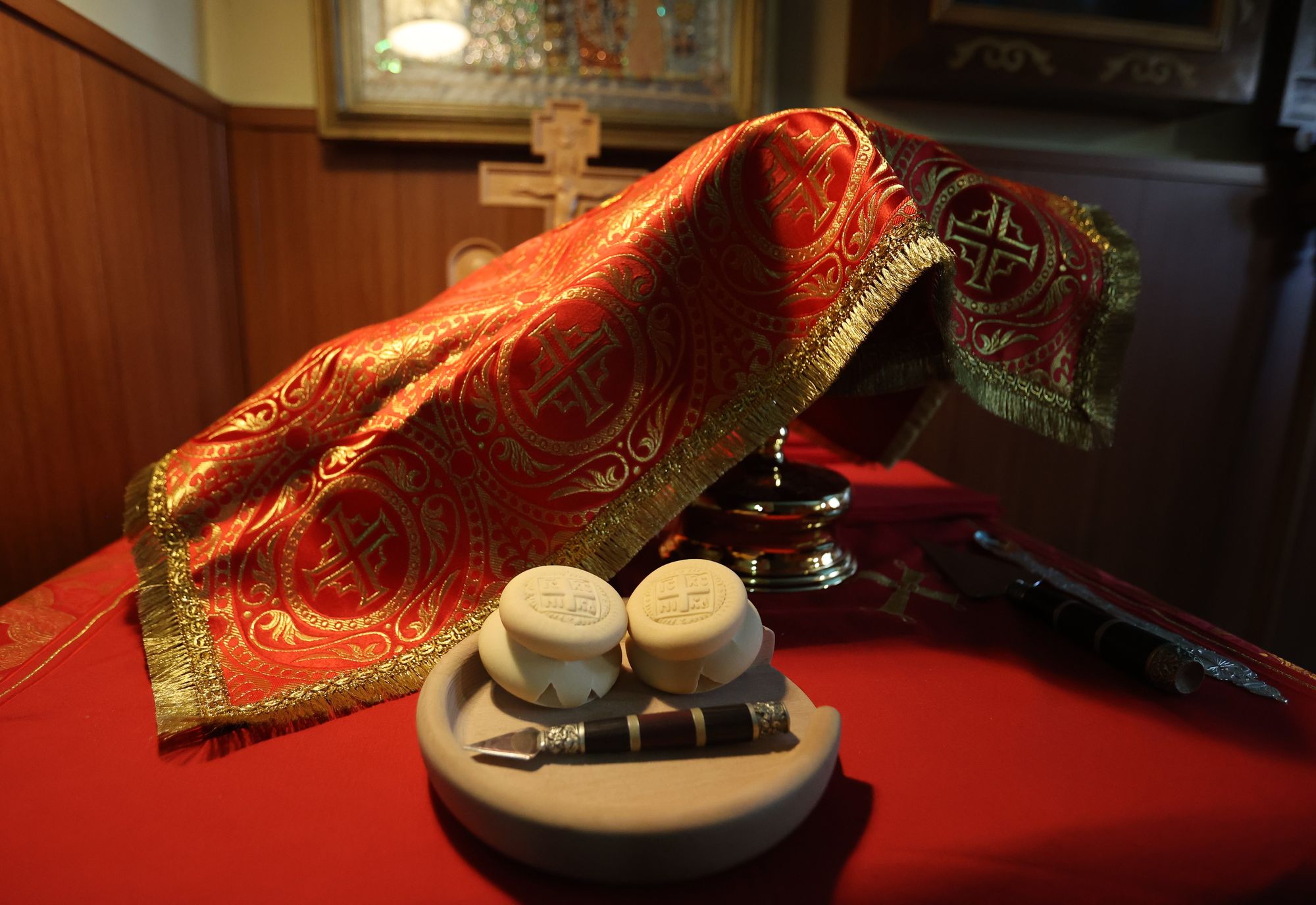 Богослужебные песнопения исполнил хор Пантелеимоновского храма под управлением регента Елены Смолиной.