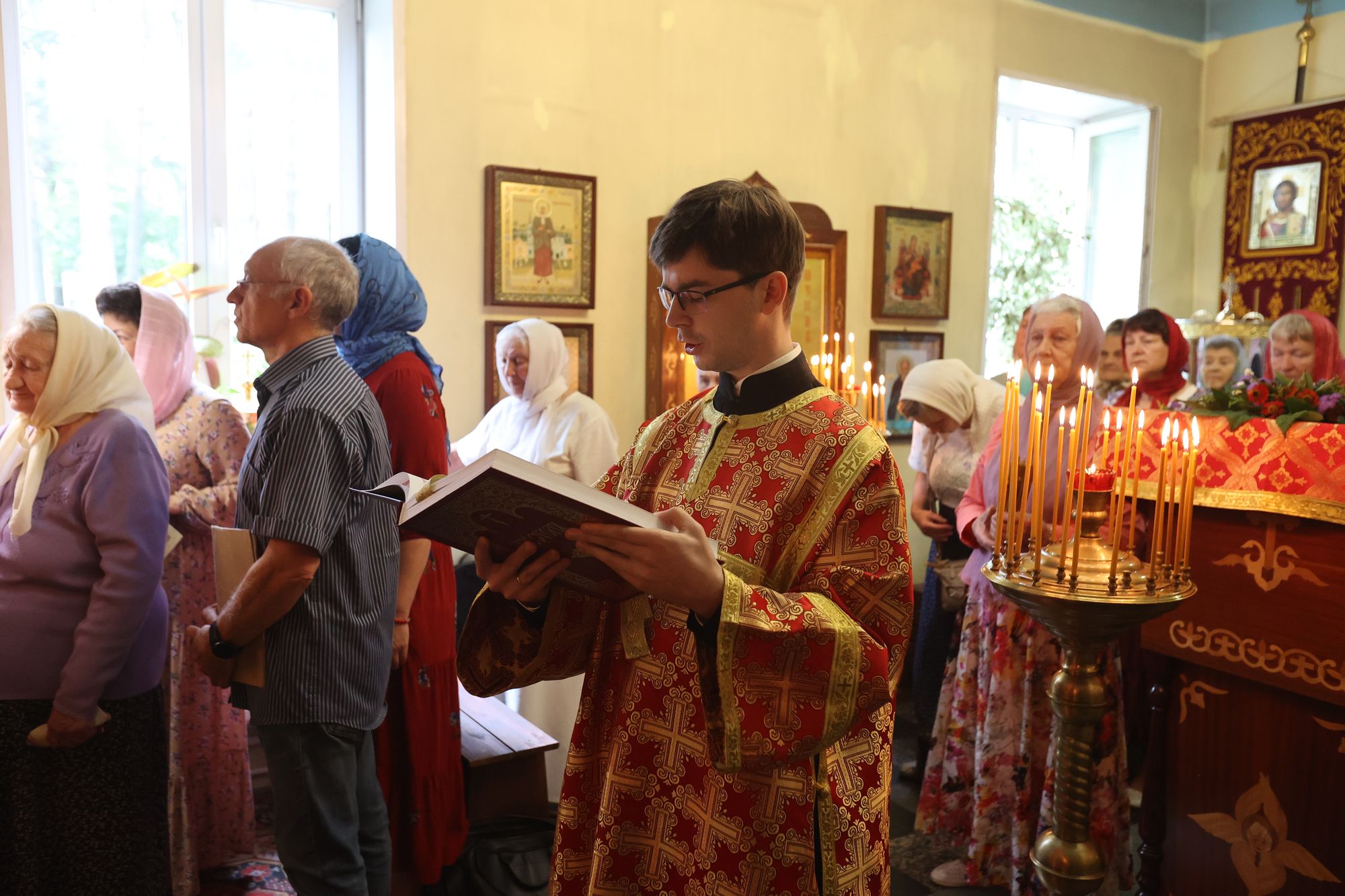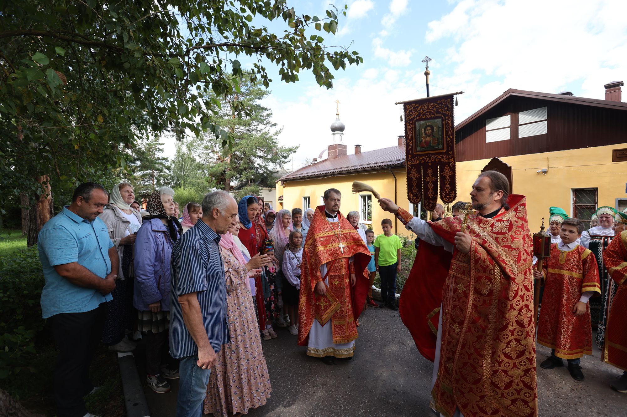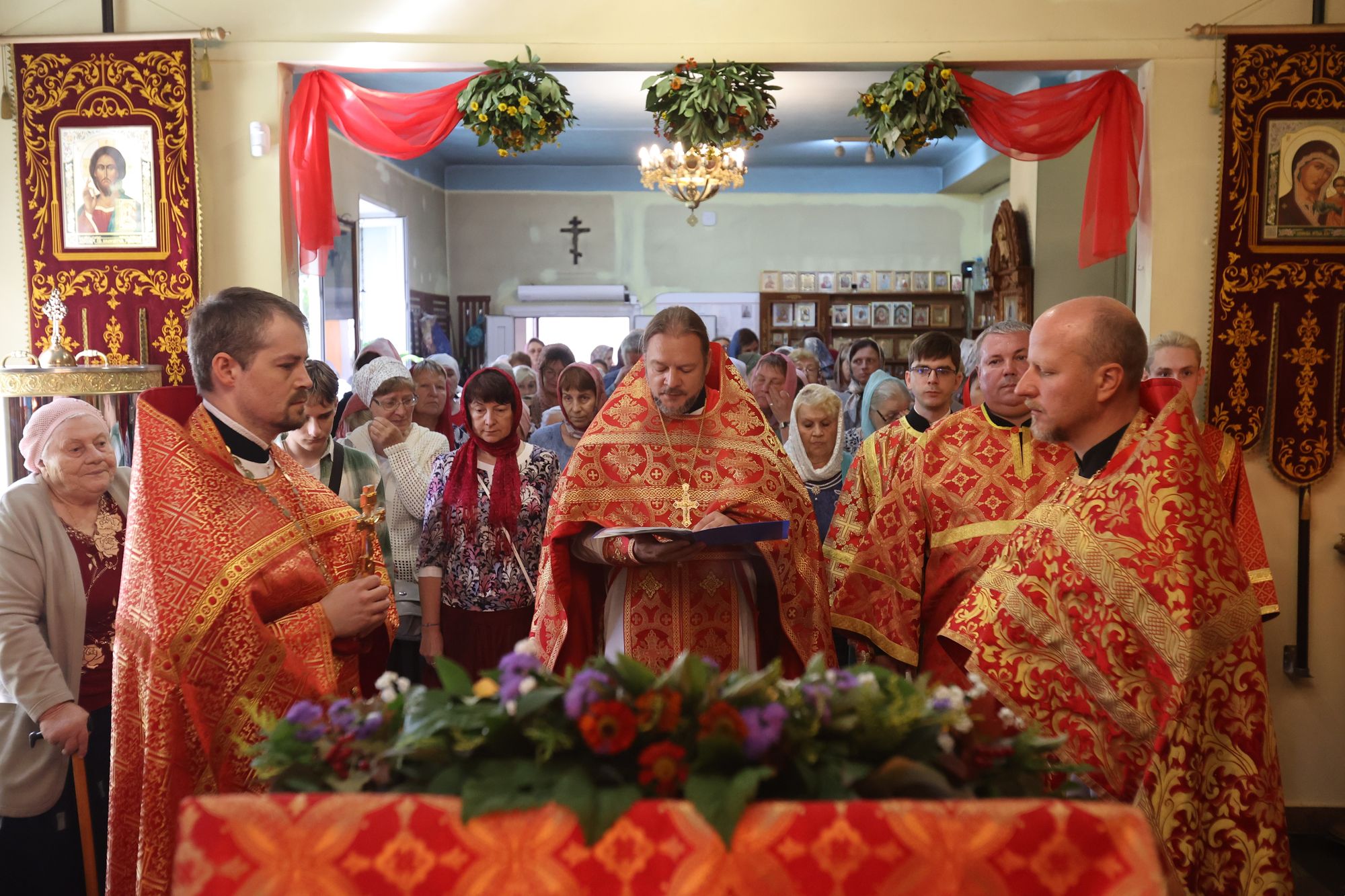 9 августа 2024 г. Божественную литургию возглавил благочинный 1-го Воскресенского округа протоиерей Сергий Якимов в сослужении настоятеля храма протоиерея Кирилла Седова и настоятеля Иоанно-Златоустовского храма с. Новлянское протоиерея Евгения Егорова. Затем молящиеся под праздничный трезвон приняли участие в торжественном молебне с крестным ходом. С приветственным словом ко всем верующим обратился благочинный.