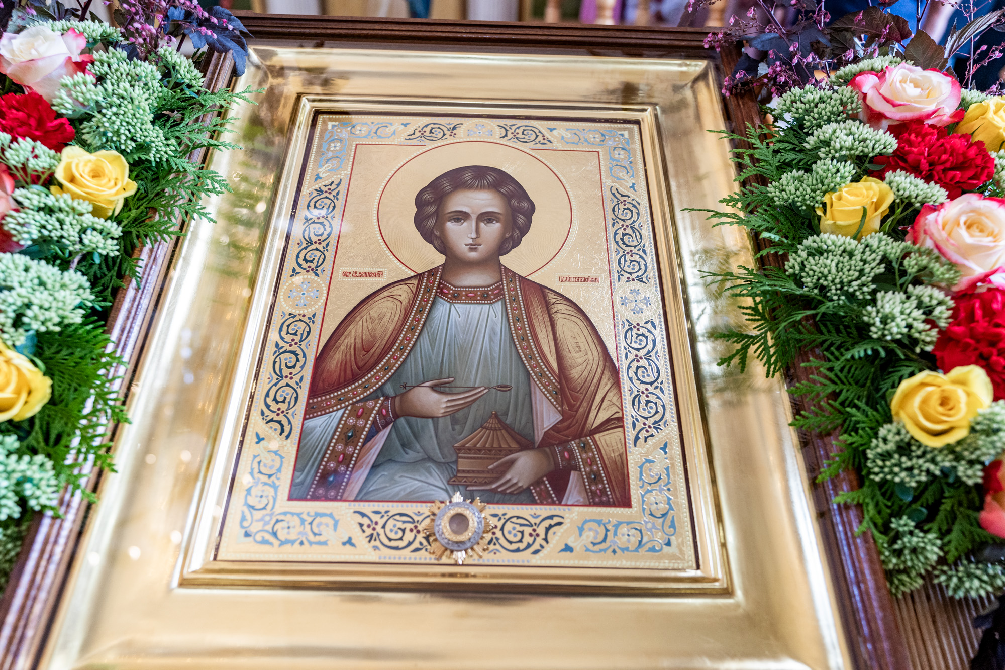 В конце богослужения перед праздничной иконой великомученика Пантелеимона было совершено славление.