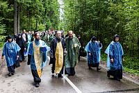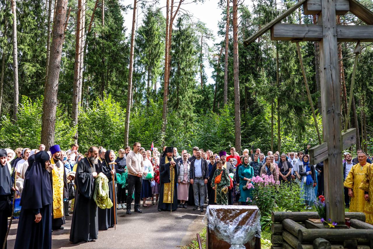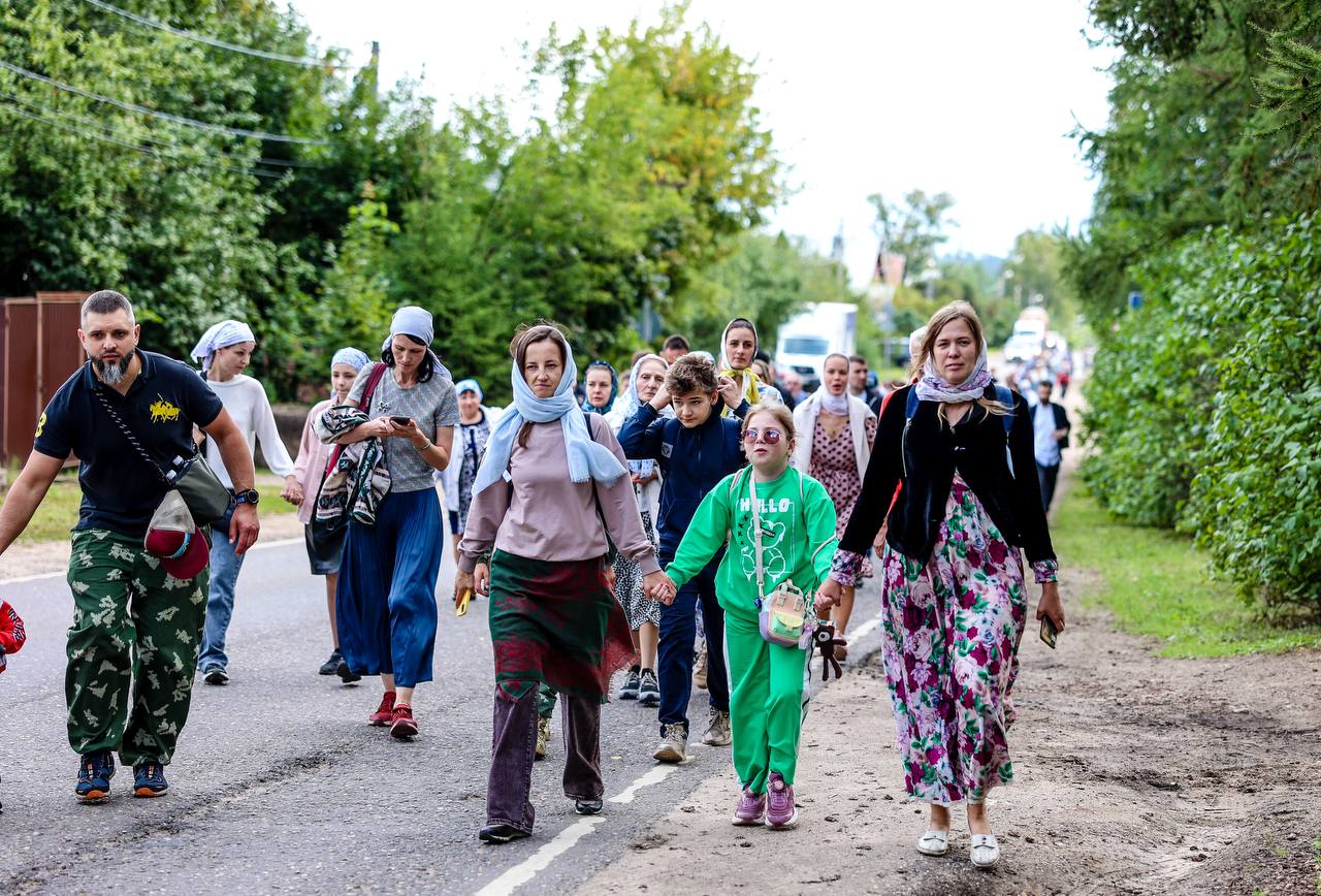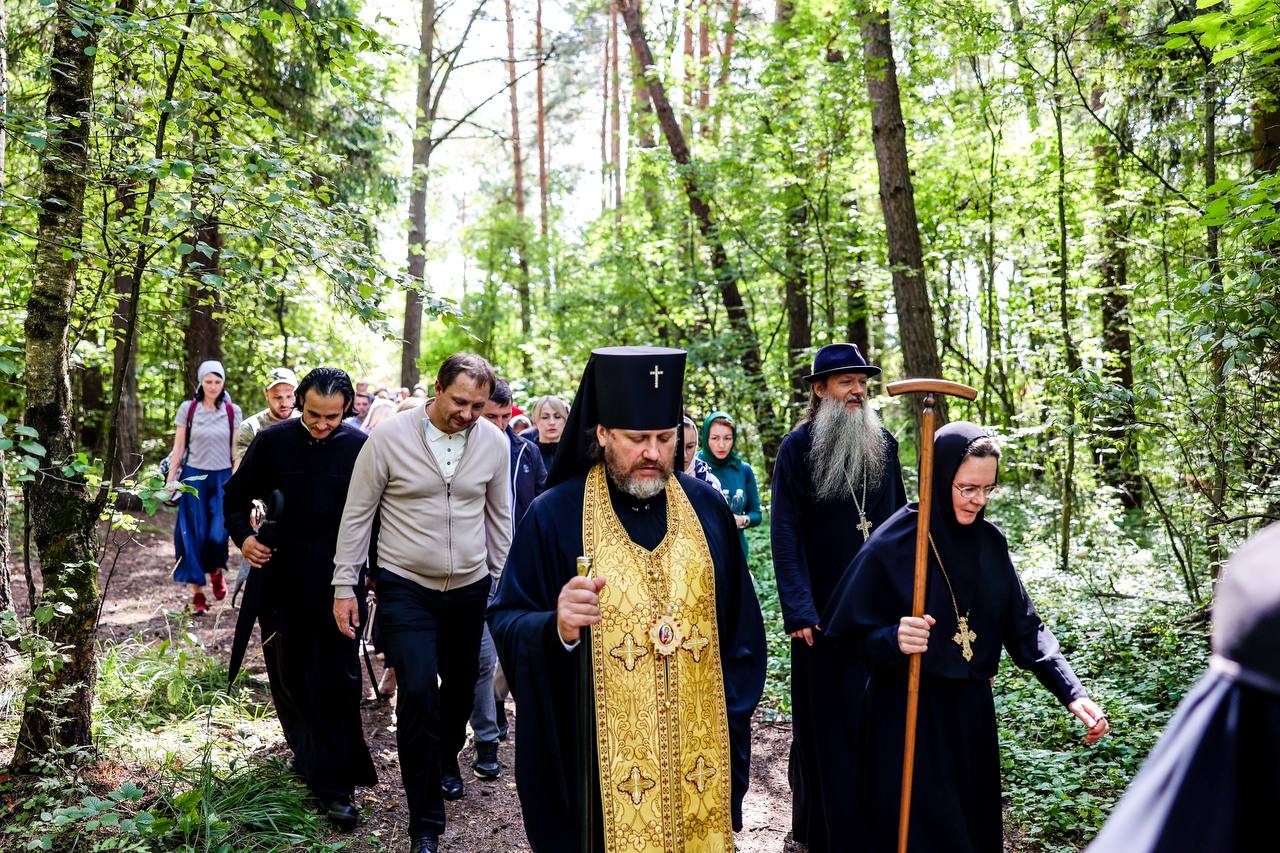 Затем состоялось пешее паломничество от древнего храма в селе Дмитровское в строящийся храм святителя Николая в поселке Николина Гора. Паломники во главе с Владыкой Фомой прошли по старинной митрополичьей дороге через Масловский лес.