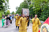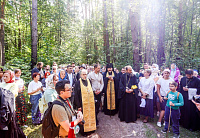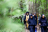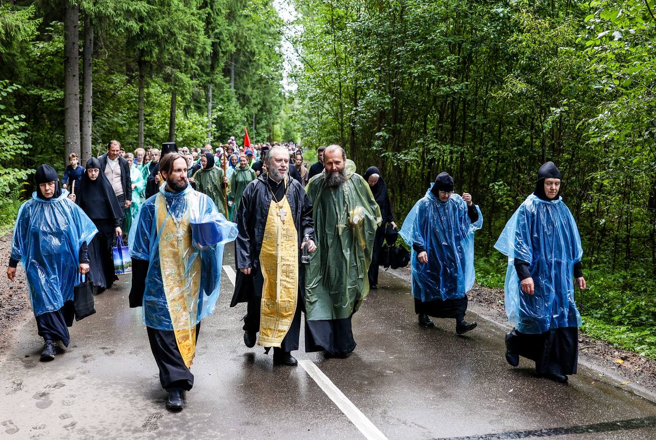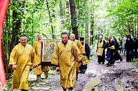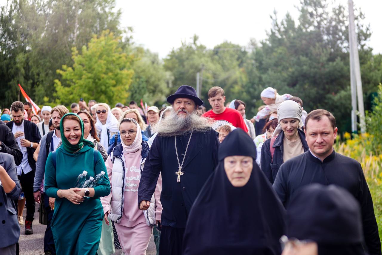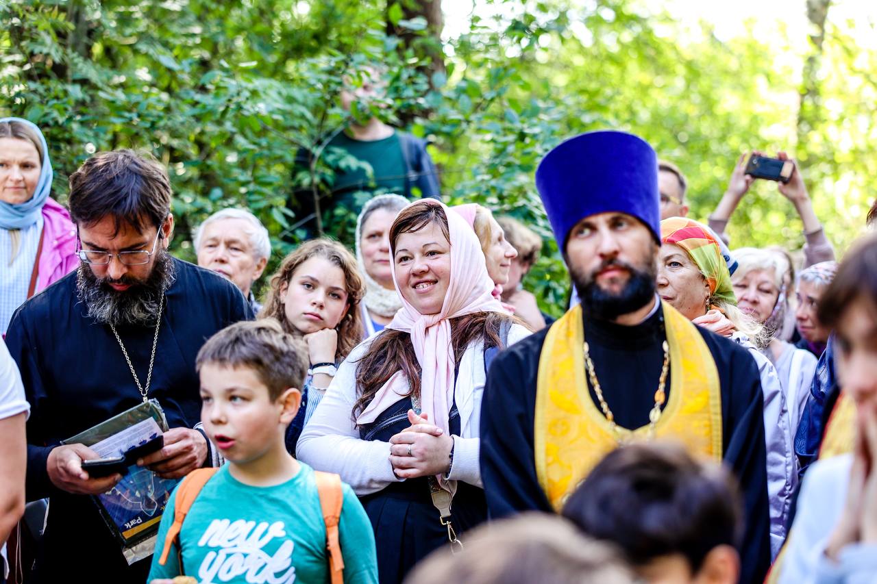 Затем состоялось пешее паломничество от древнего храма в селе Дмитровское в строящийся храм святителя Николая в поселке Николина Гора. Паломники во главе с Владыкой Фомой прошли по старинной митрополичьей дороге через Масловский лес.