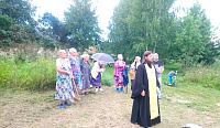 Настоятель Владимирского храма поселка Индустрия иерей Илия Царьков на месте разрушенного в советское время Никольского храма отслужил молебен и поздравил местных жителей с праздником.