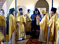 Его Высокопреосвященству сослужили: протоиерей Александр Ковтун, благочинный Шаховского церковного округа; духовенство благочиния.