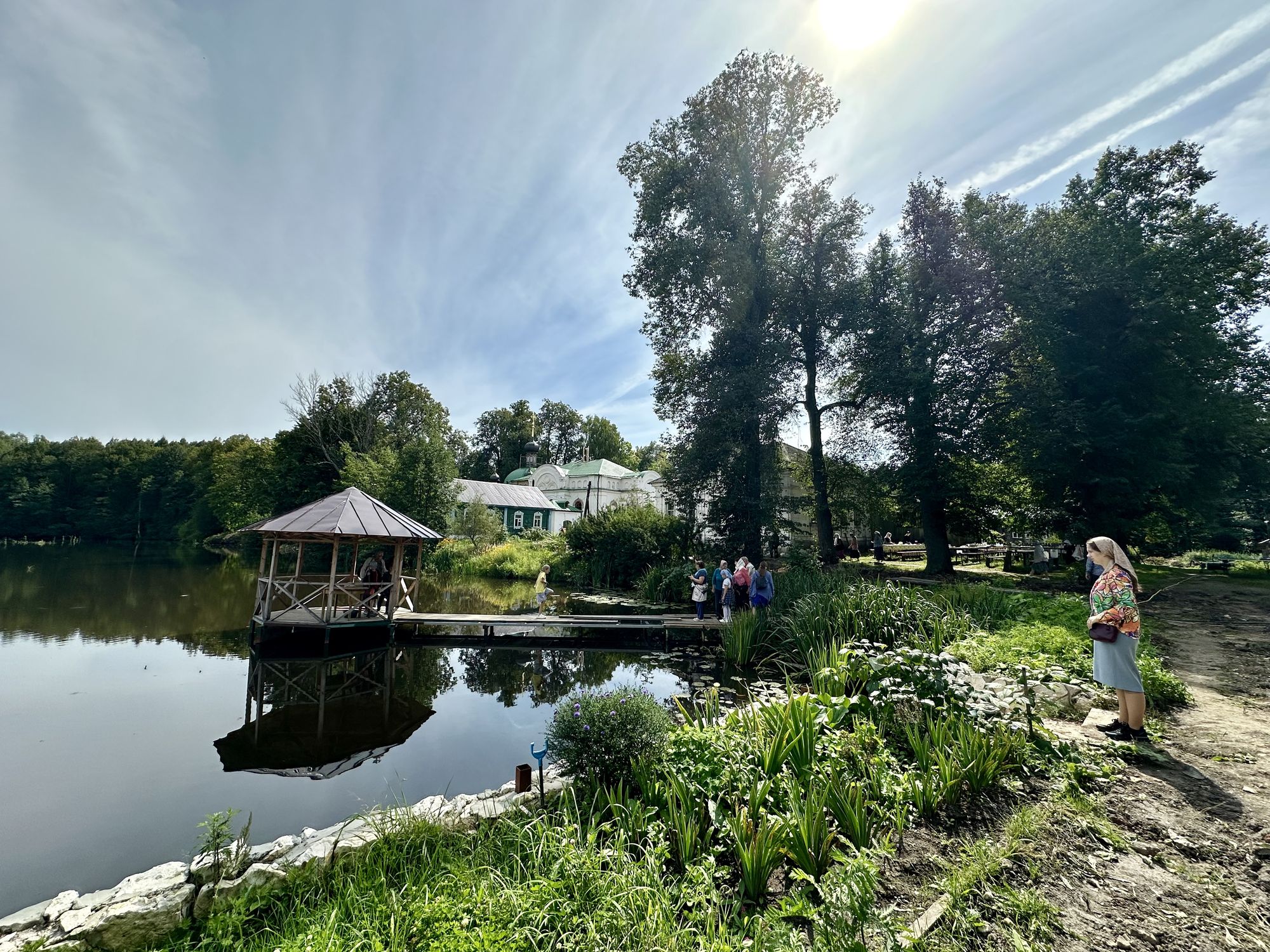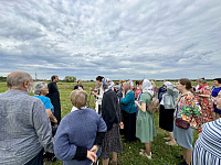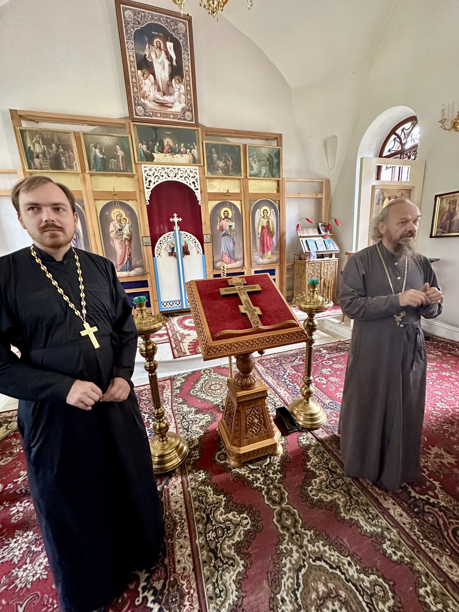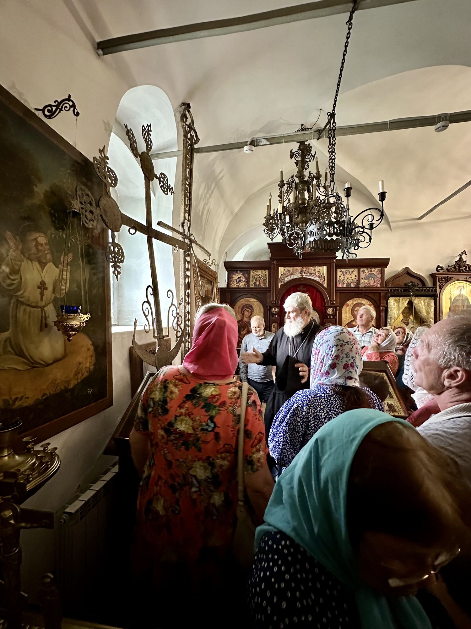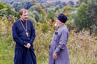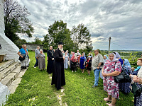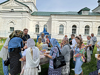 Затем паломники посетили Красный холм, где стоит посреди мещерского леса храм Воздвижения Честного Креста Господня. После общей молитвы у чудотворной иконой Пресвятой Богородицы «Боголюбская» была организована трапеза.