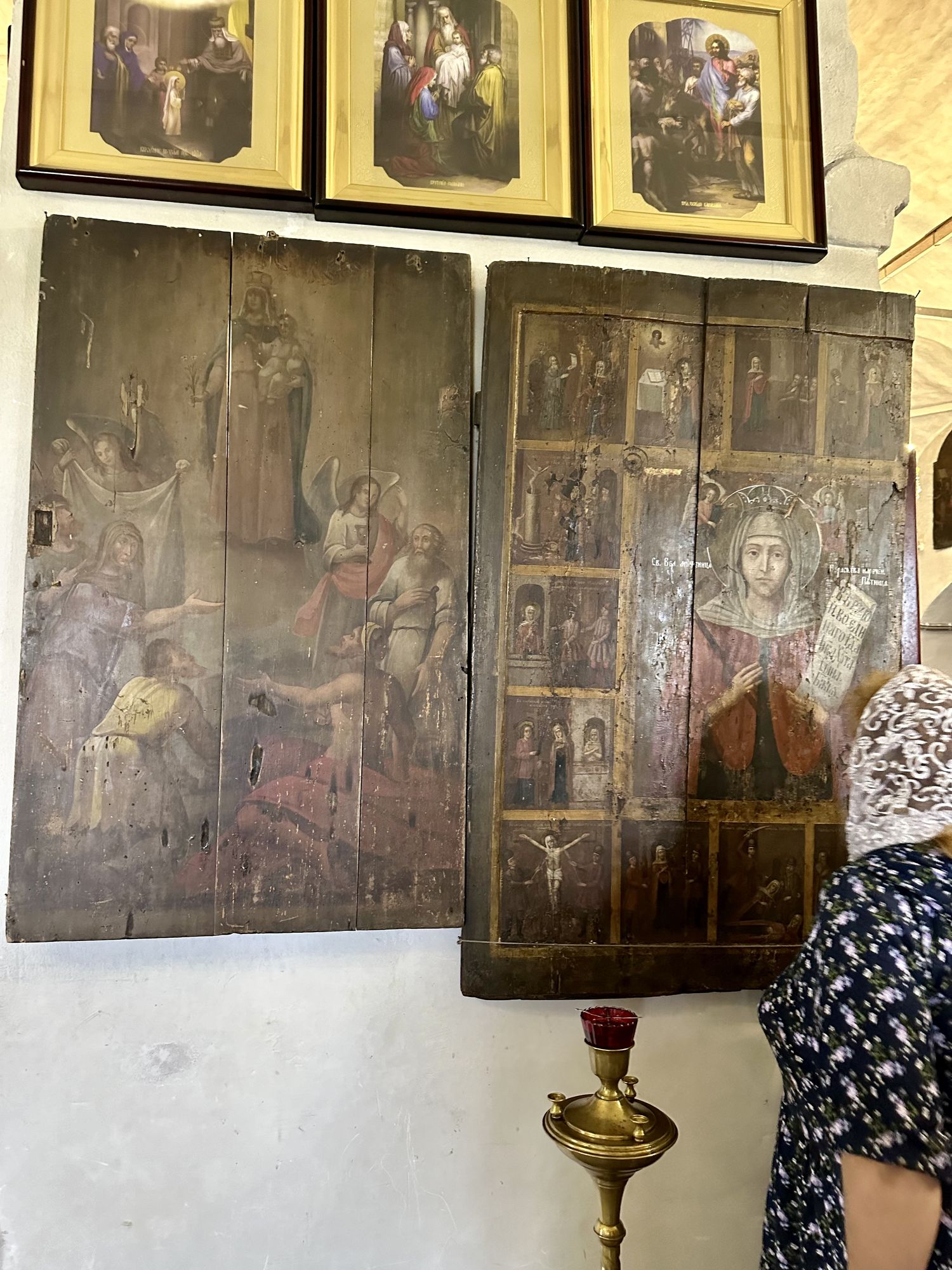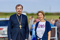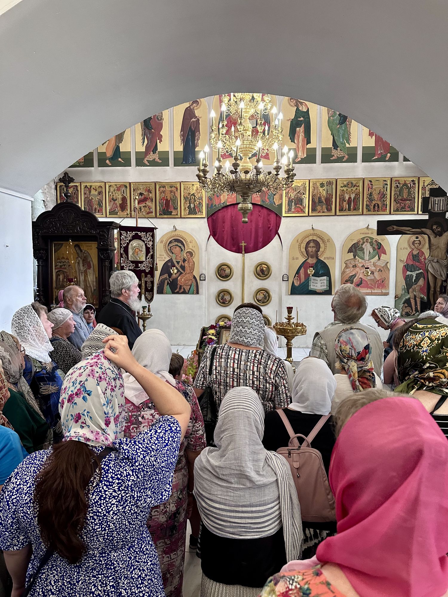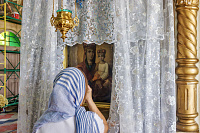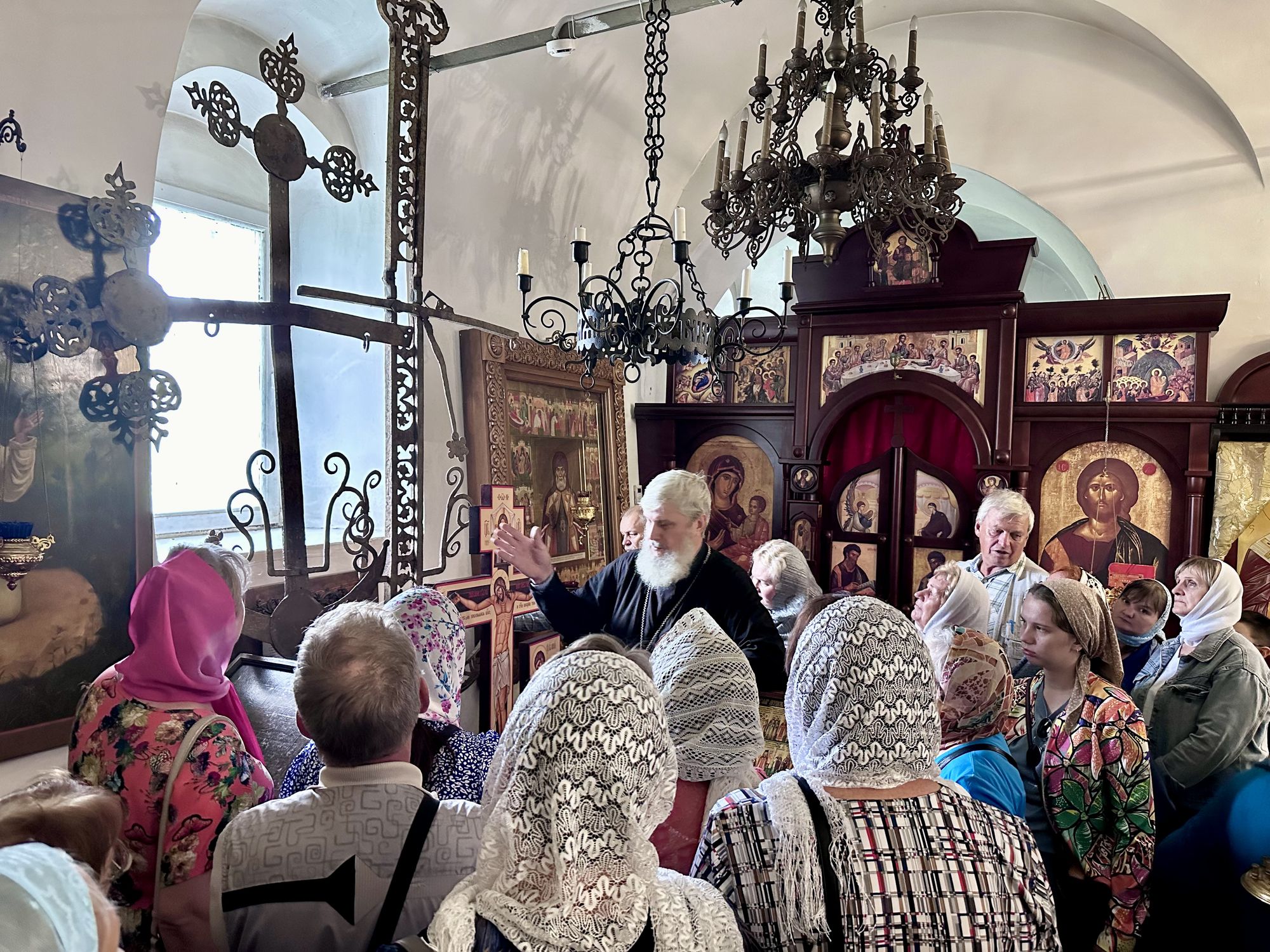 Затем паломники посетили Красный холм, где стоит посреди мещерского леса храм Воздвижения Честного Креста Господня. После общей молитвы у чудотворной иконой Пресвятой Богородицы «Боголюбская» была организована трапеза.