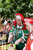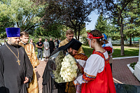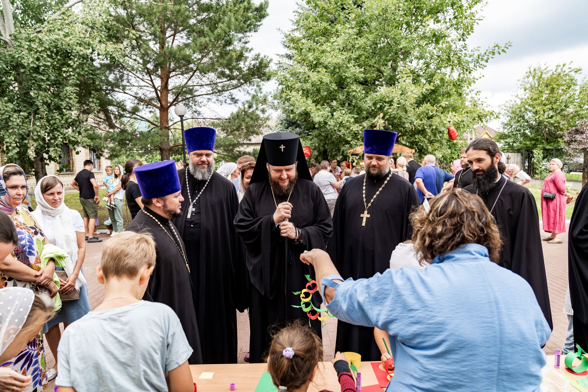 Далее владыка посетил праздник «Вельяминовское яблоко» на территории Преображенского храма, посвящённый Дню села Вельяминово. Гостям были представлены мастер-классы по изготовлению карамельных яблок и тематических поделок, а также состоялся концерт духовной и народной музыки. Мероприятие открыл архиепископ Аксий, который обратился с приветственным словом к собравшимся. Затем со словами поздравления выступили глава Повадинского территориального отдела М.Н.Шувалова и депутат Совета депутатов г.о. Домодедово Ю.В.Дрёмов.