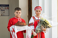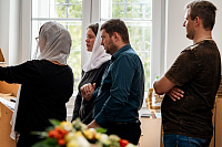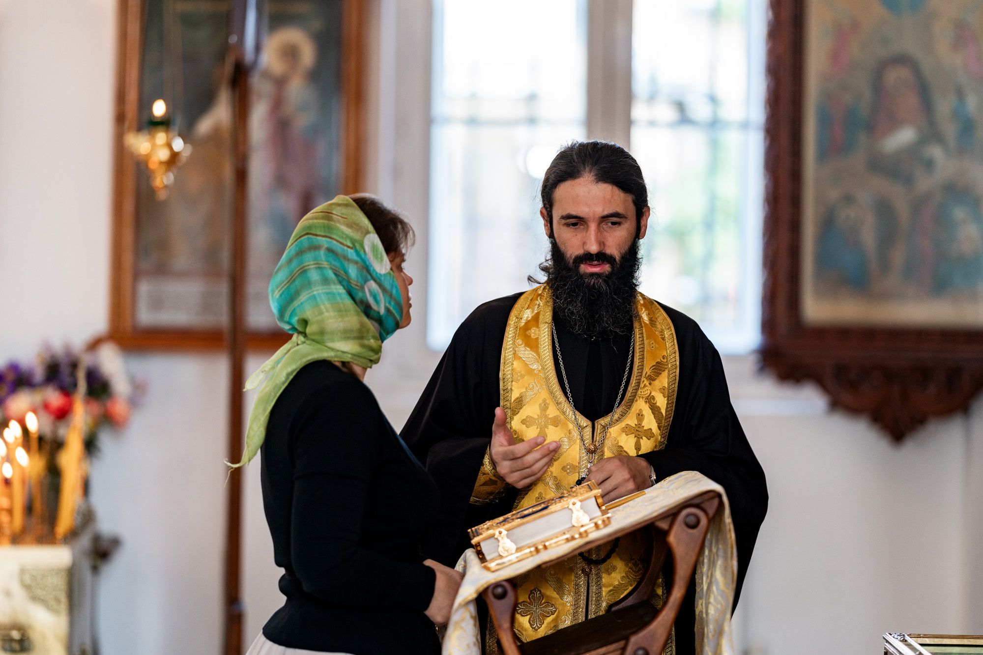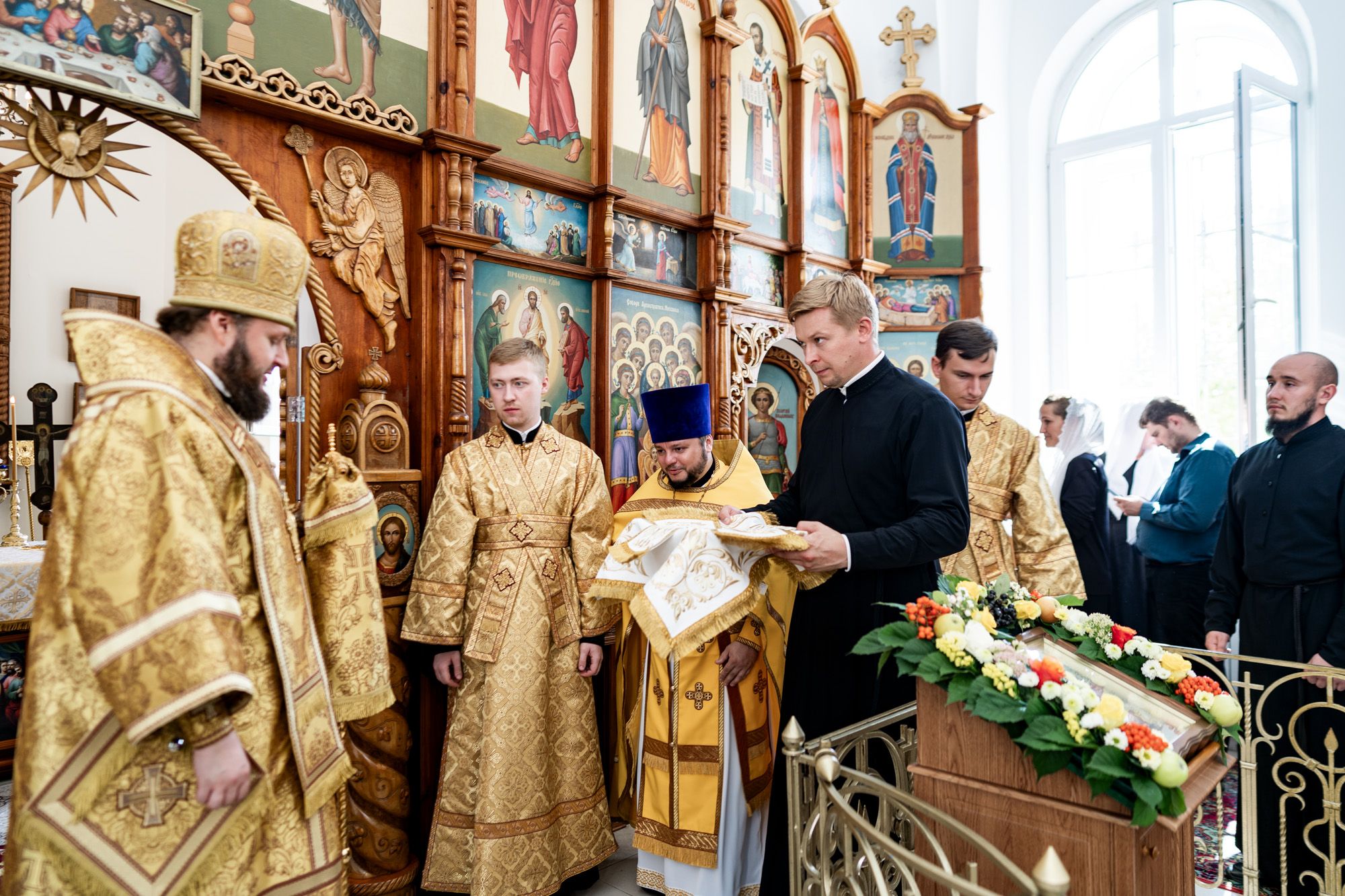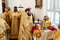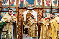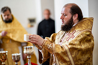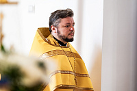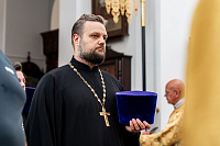 По окончании богослужения с приветственным словом к архиепископу Аксию обратился настоятель храма иерей Димитрий Фёдоров, поблагодарил его за визит и подарил владыке покровцы для совершения Божественной литургии.