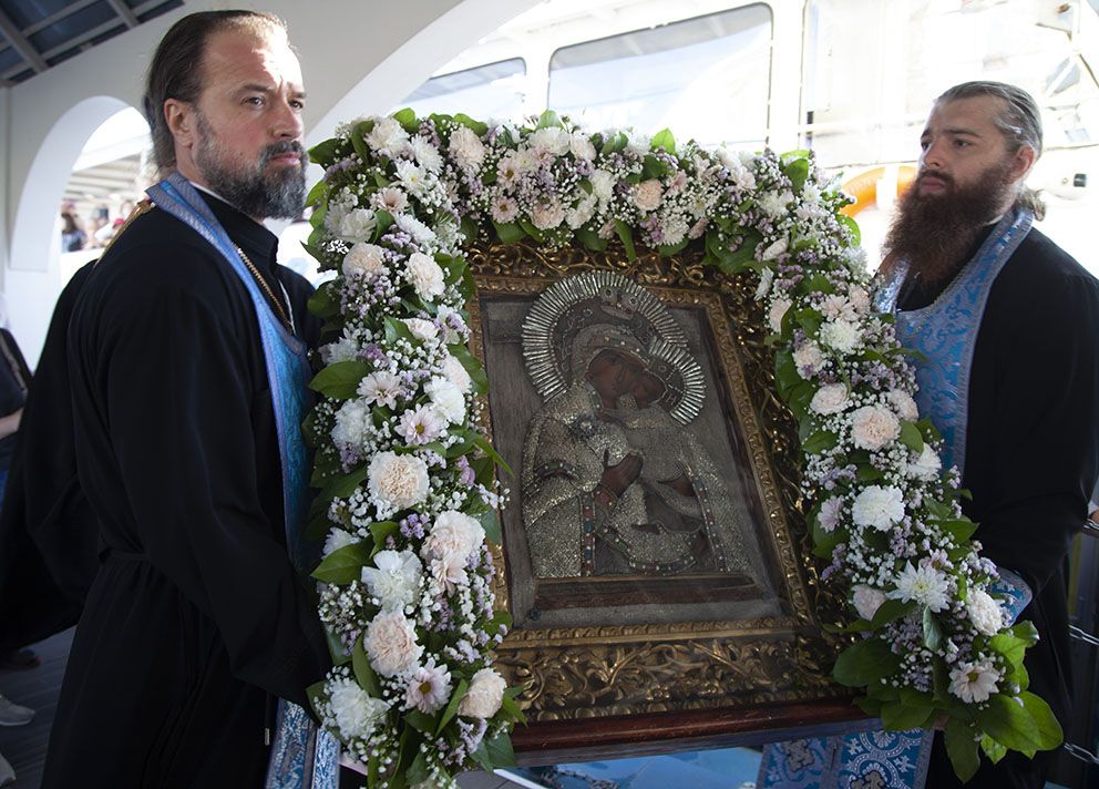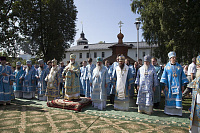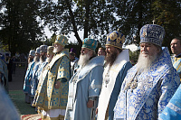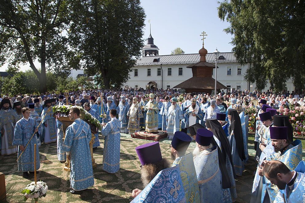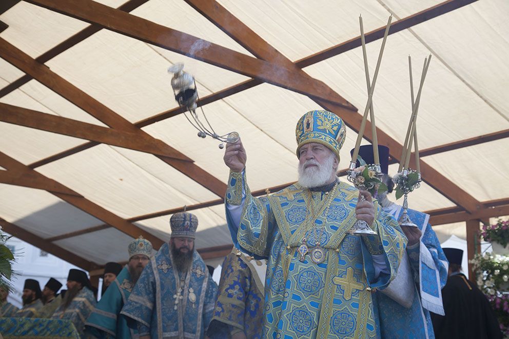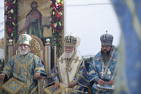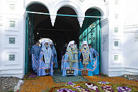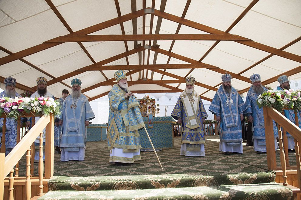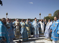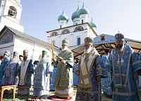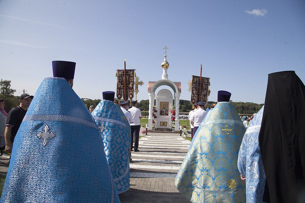 По окончании богослужения духовенство и молящиеся отправились с молебным пением в Кедровую рощу к месту обретения иконы, затем – на набережную реки Волги, где митрополит Павел совершил освящение новосозданной часовни-киота с мозаичной Толгской иконой Пресвятой Богородицы.