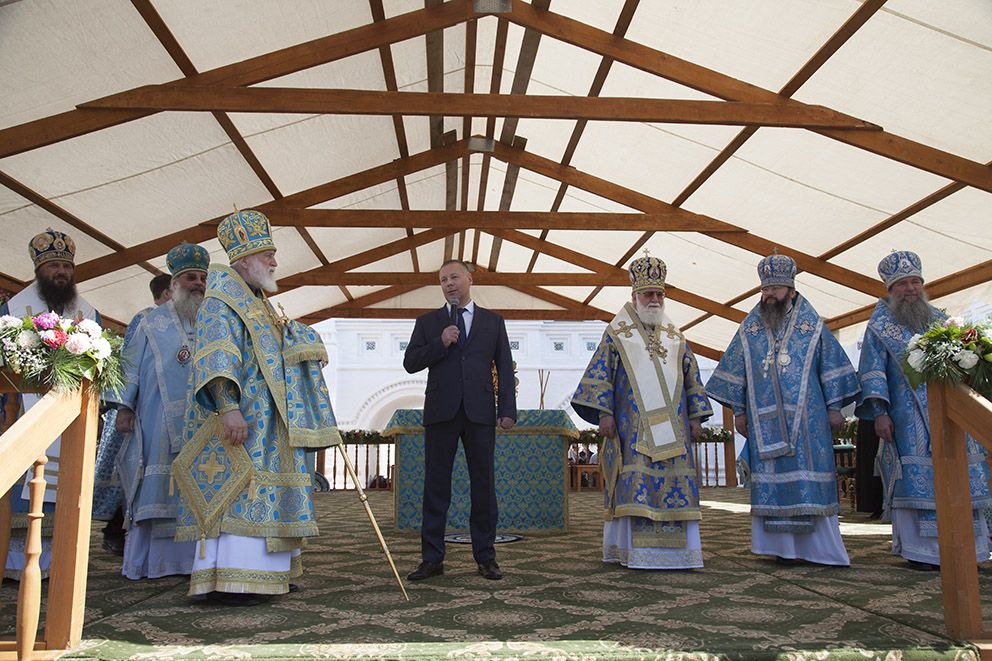 На богослужении присутствовали и молились: председатель наблюдательного совета по возрождению Толгской обители, советник Президента РФ, специальный представитель Президента по международному сотрудничеству в сфере транспорта Левитин И.Е., уполномоченный по правам человека Москалькова Т.Н., другие члены наблюдательного совета обители, Губернатор области Евраев М.Я., представители властных структур региона и общественности.