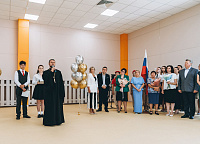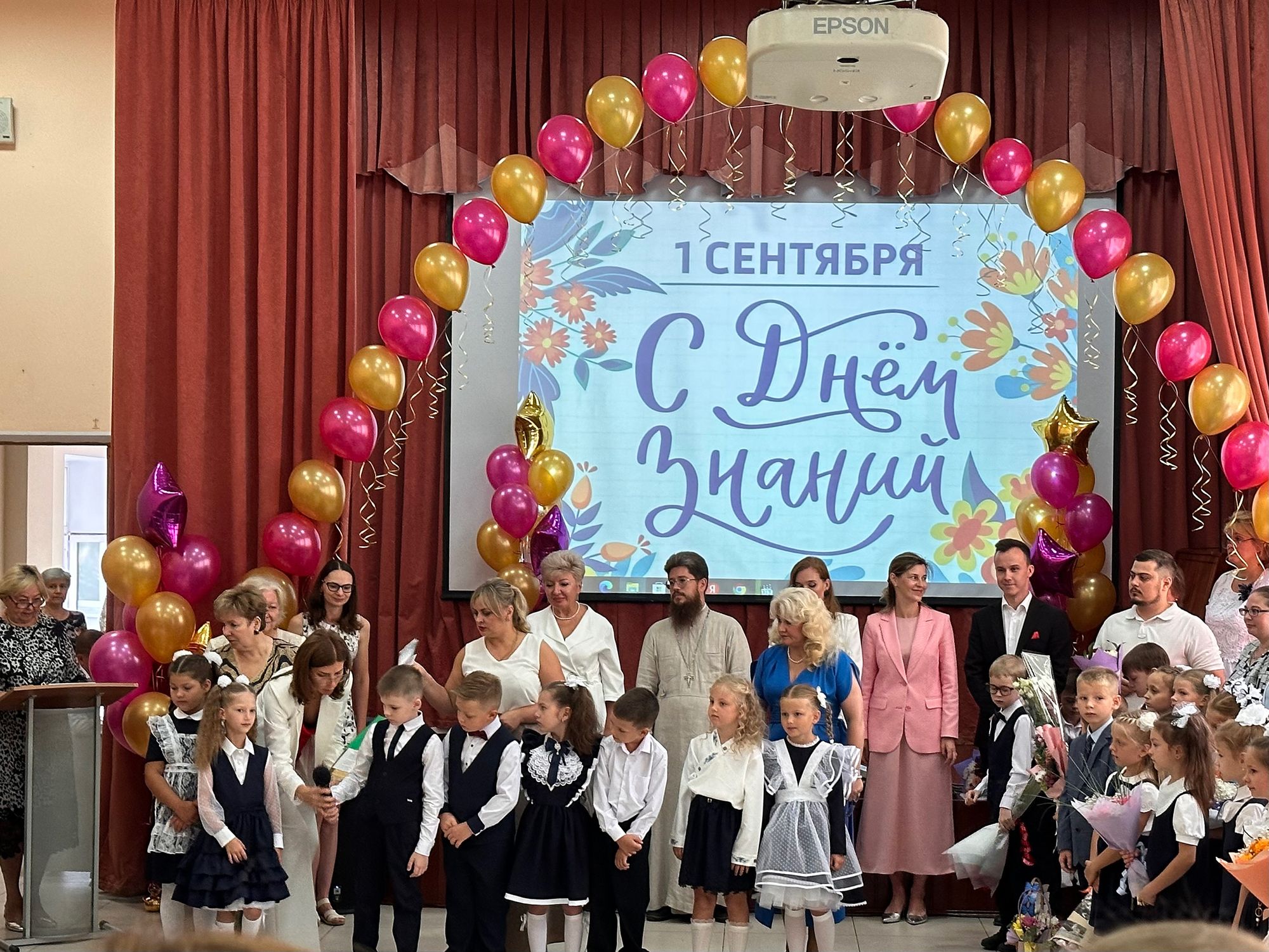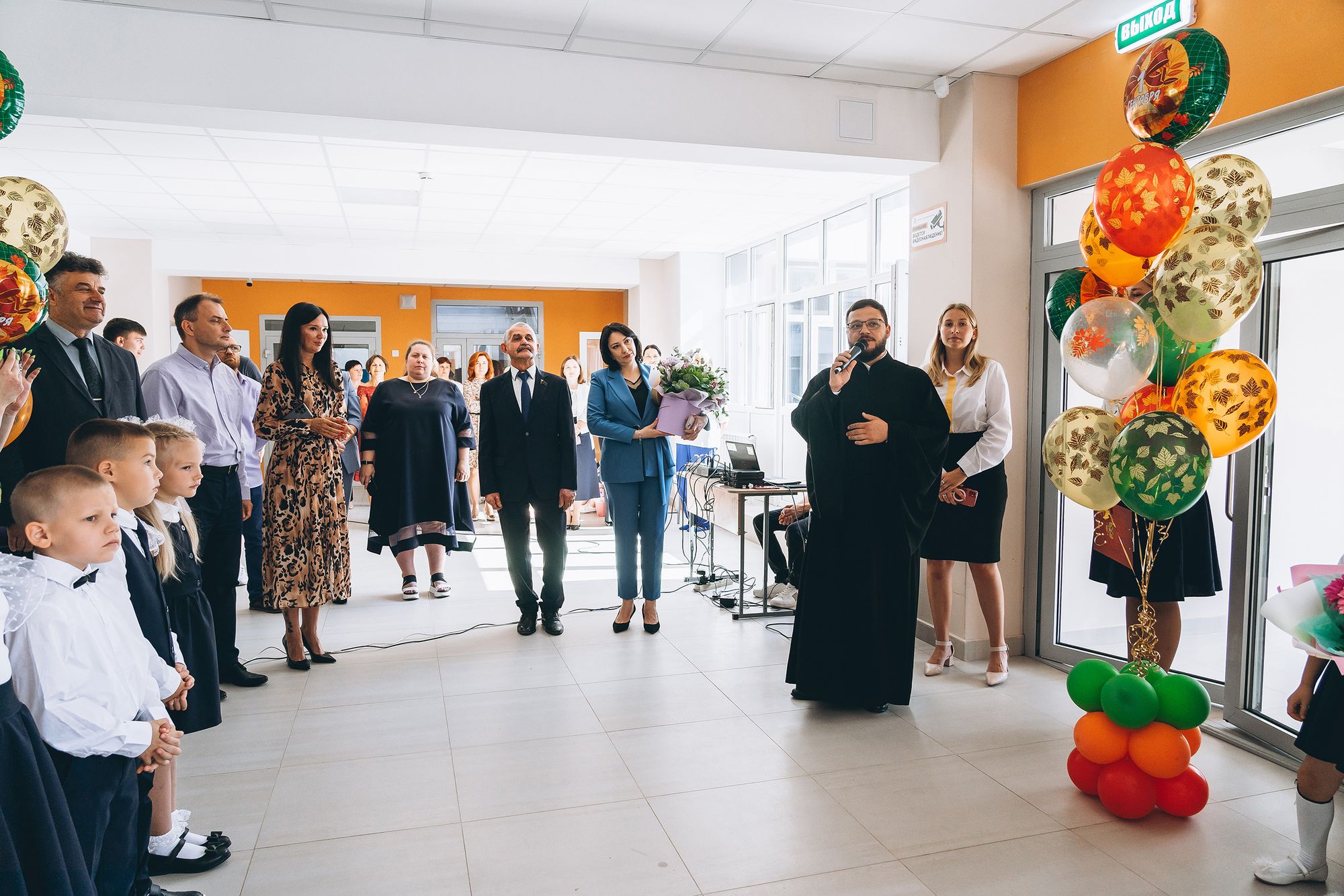 Во втором новом корпусе школы №1 преподавателей и учащихся поздравили с началом нового учебного года глава городского округа Фрязино Дмитрий Ричардович Воробьёв и клирик Державного храма священник Владимир Тарасюк.