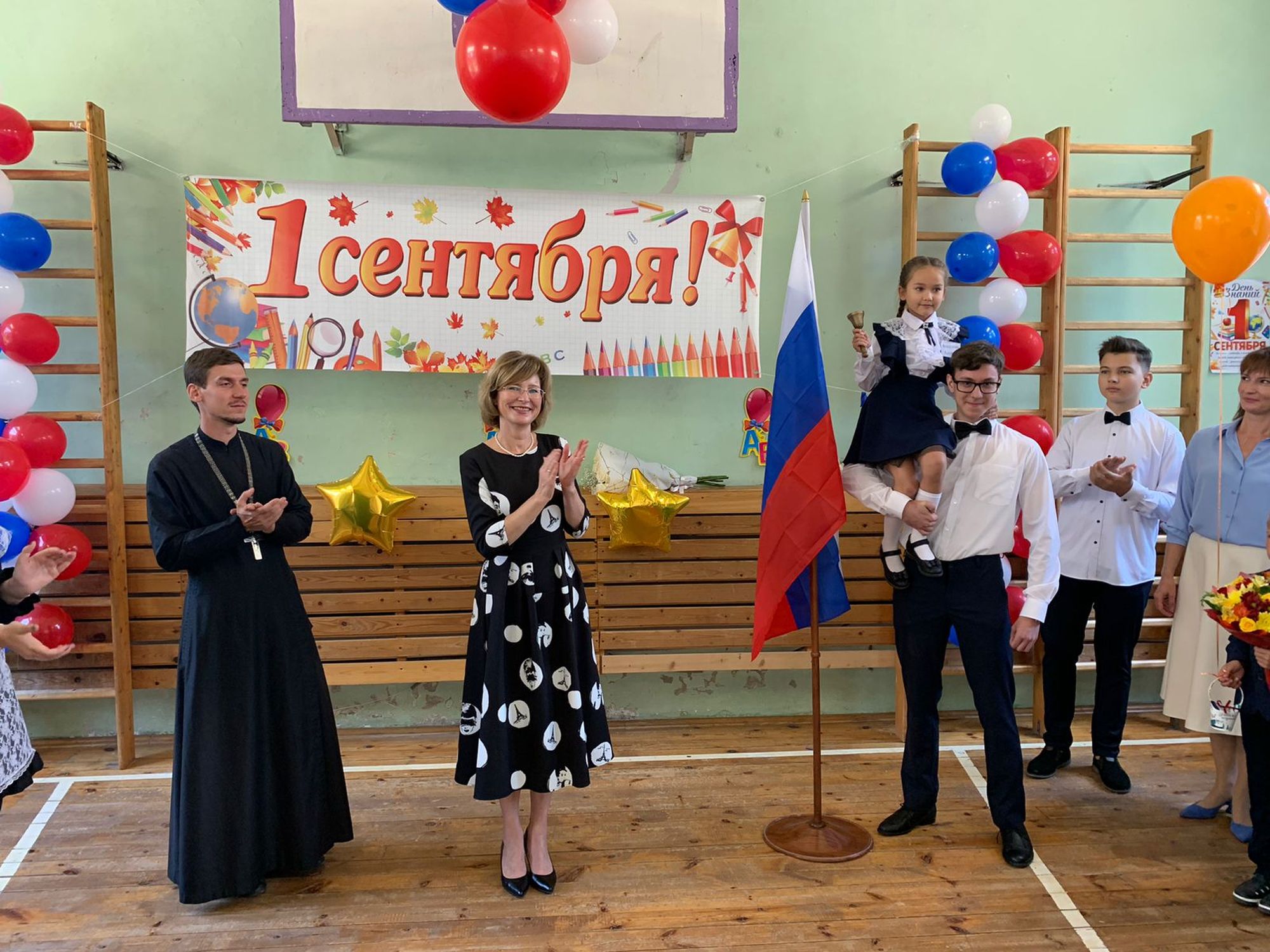 В Щёлковском лицее №7 в торжественной линейке участвовал настоятель Никольского храма деревни Оболдино священник Алексий Мареев.