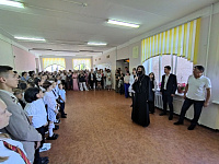 В кадетской школе-интернате с первоначальной лётной подготовкой имени трижды Героя Советского Союза А.И. Покрышкина кадетов напутствовал настоятель Князь-Владимирского храма деревни Новофрязино священник Виктор Долгих.