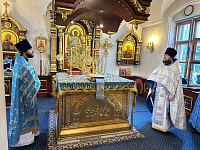 Его Высокопреосвященству сослужил иерей Григорий Федотов, благочинный Одинцовского округа, а также клирики храма.