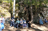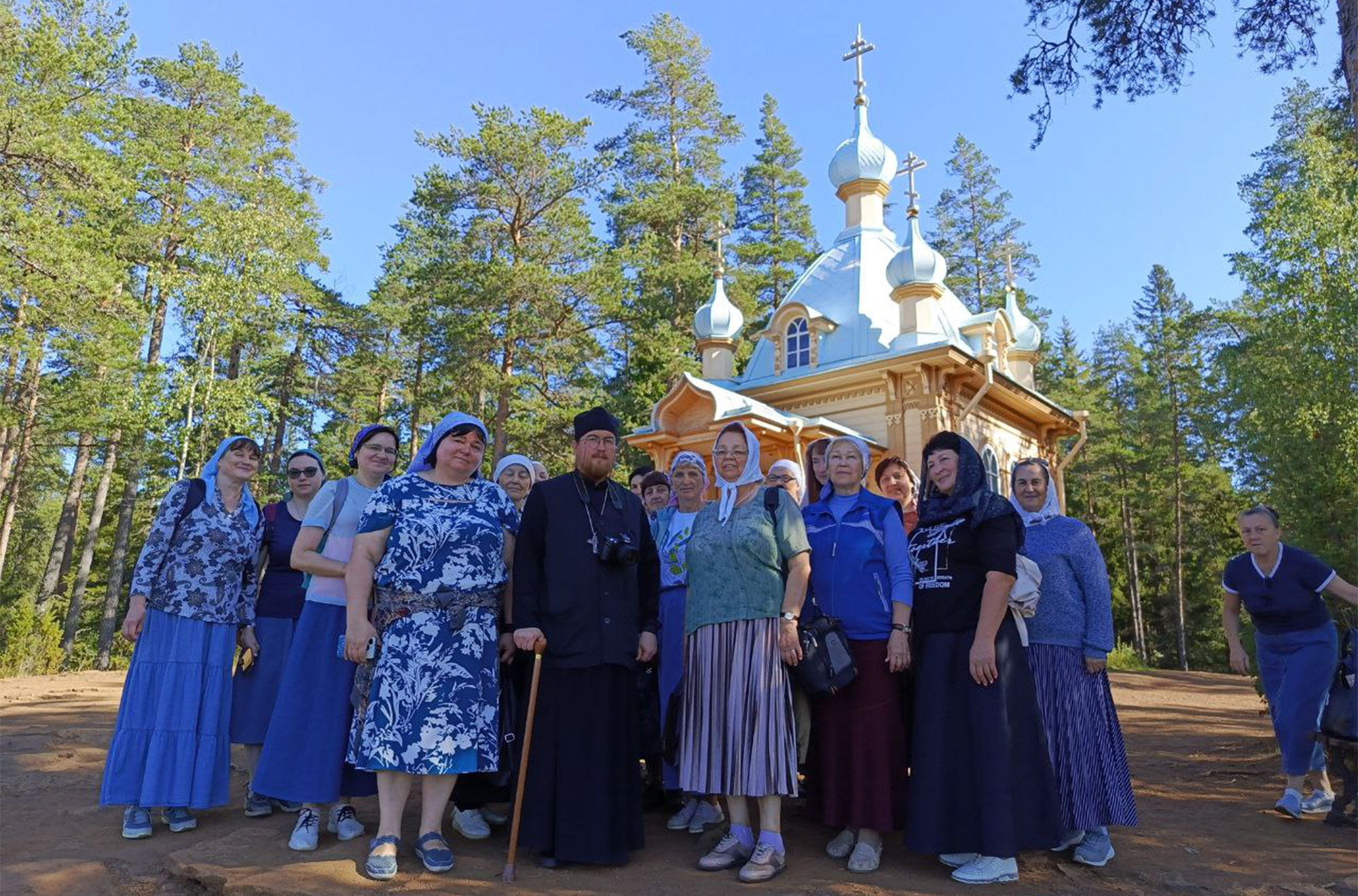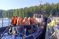 Побывали на Игуменском кладбище, где пропели литию по усопшим насельникам острова. На корабле отправились на Святой остров, поклонились месту подвигов прп. Александра Свирского. Прочитали акафист у пещеры в которой подвизался преподобный.