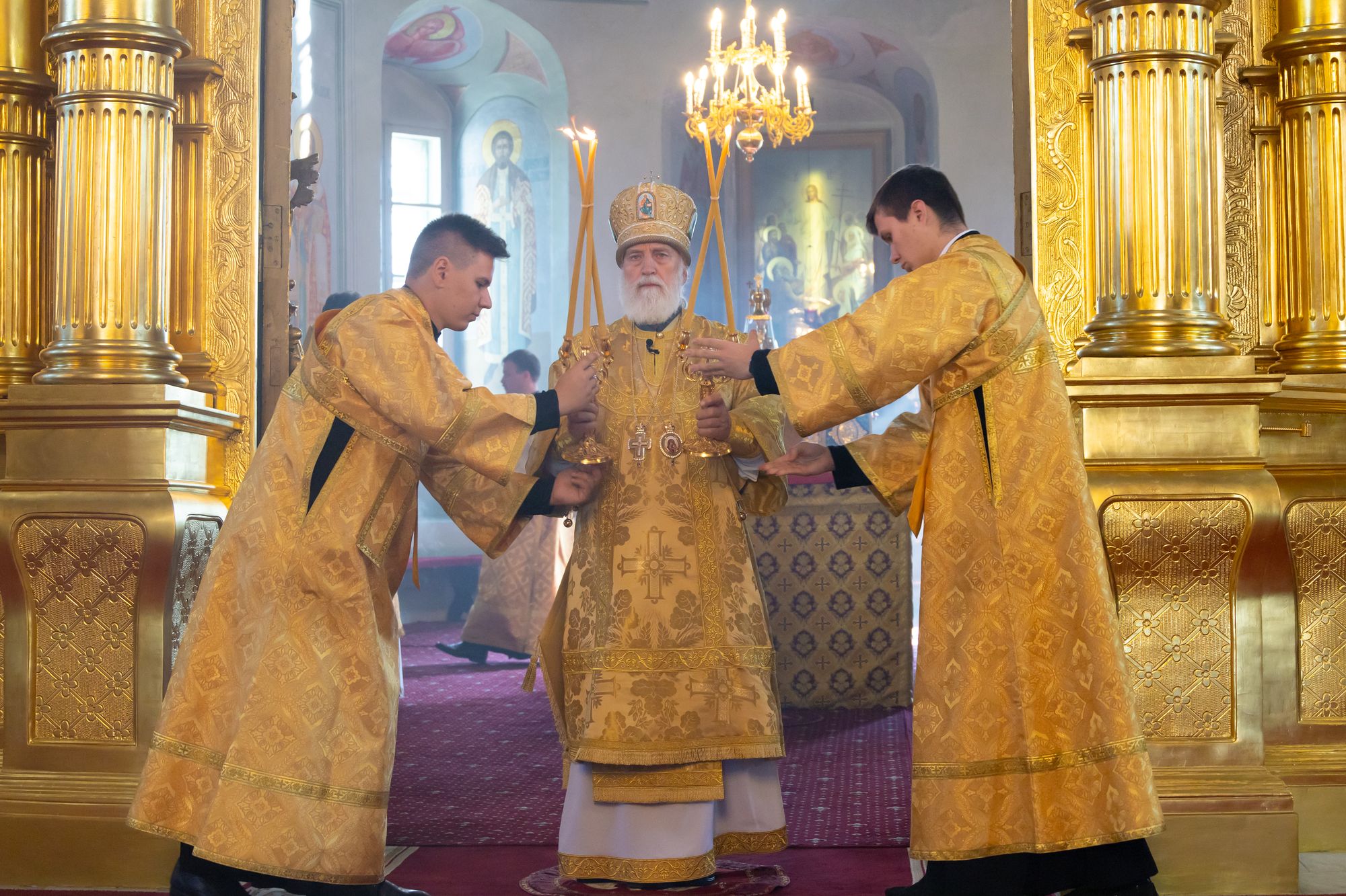 По окончании богослужения было совершено славление Пресвятой Богородицы, после чего Владыка Павел обратился к духовенству и молящимся с архипастырским словом.