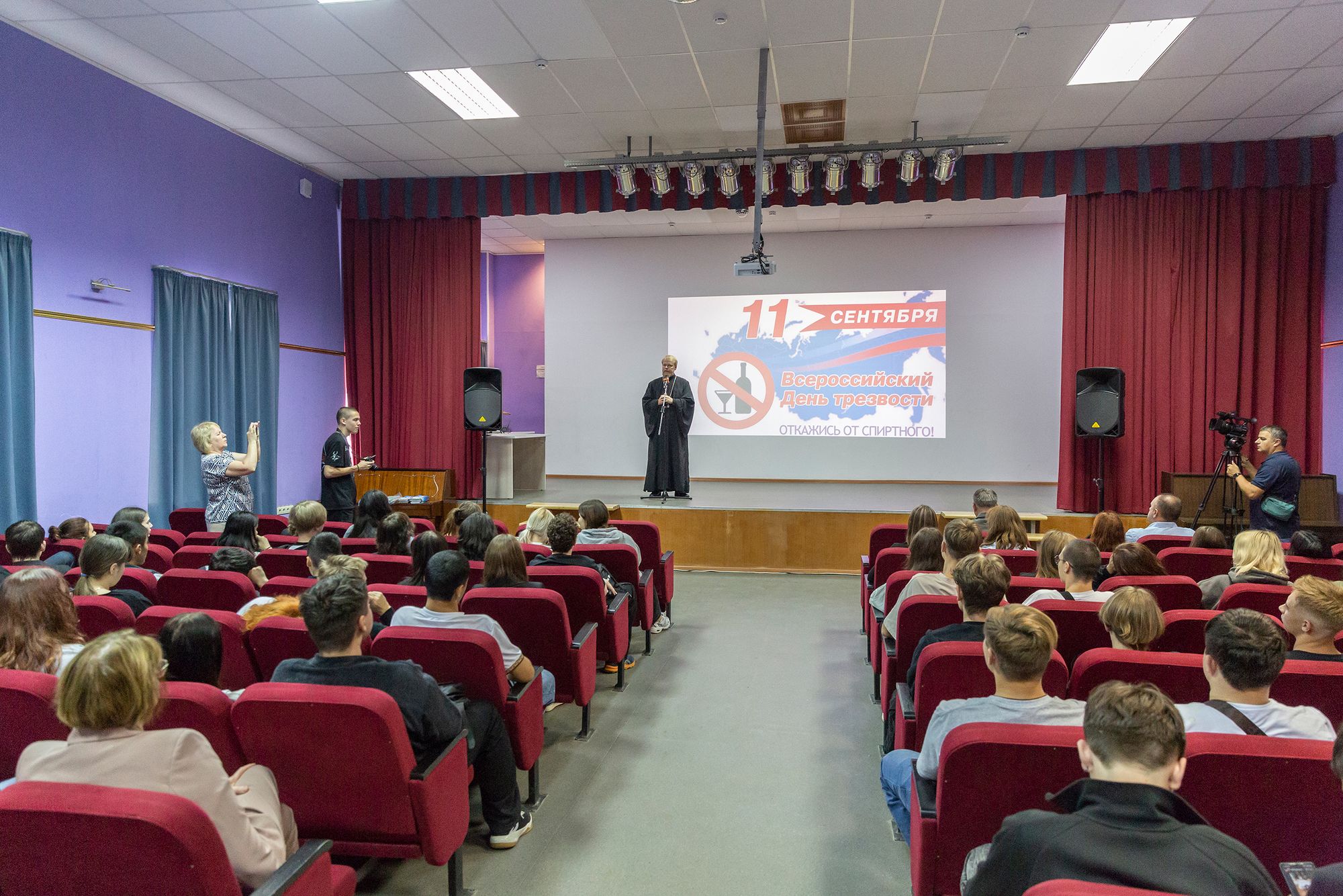 В рамках Антинаркотического месячника «Щёлково за здоровый образ жизни» в структурных подразделениях №3 и №4 Щёлковского колледжа с участием групп 1 курса прошло тематическое мероприятие, посвященное Дню трезвости. На мероприятии присутствовали заместитель главы администрации городского округа Щёлково по территориальной безопасности Виктор Станиславович Сёмин, начальник управления территориальной безопасности администрации городского округа Щёлково Александр Сергеевич Колесников и ответственный в Щёлковском благочинии по вопросам семьи, защиты материнства и детства священник Димитрий Медведев.