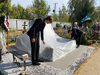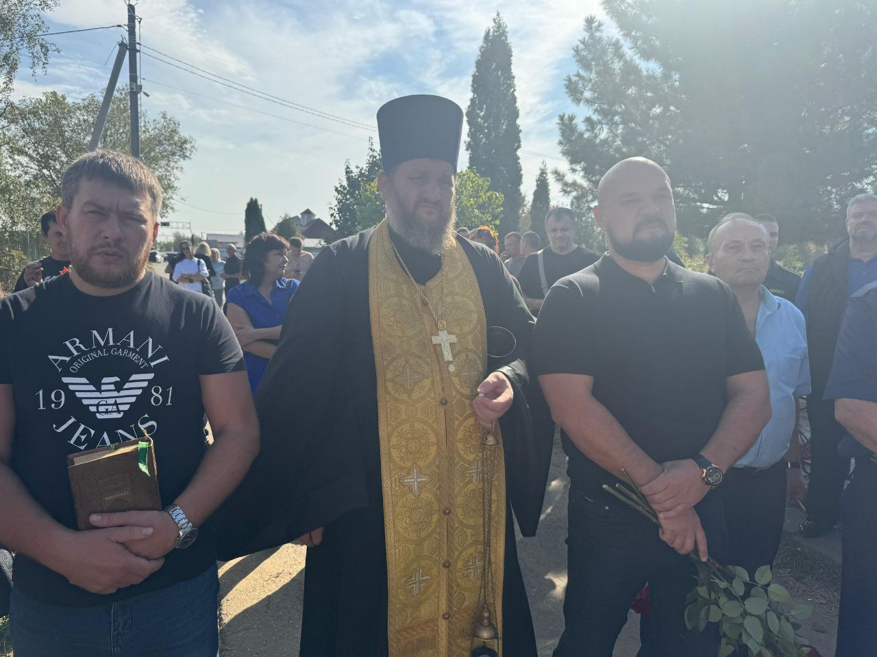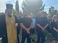 Отец Алексий обратился к присутствующим со словами поддержки, напомнил о необходимости помнить подвиг героев, освятил памятник воину и совершил заупокойную литию о упокоении приснопоминаемого Артема.