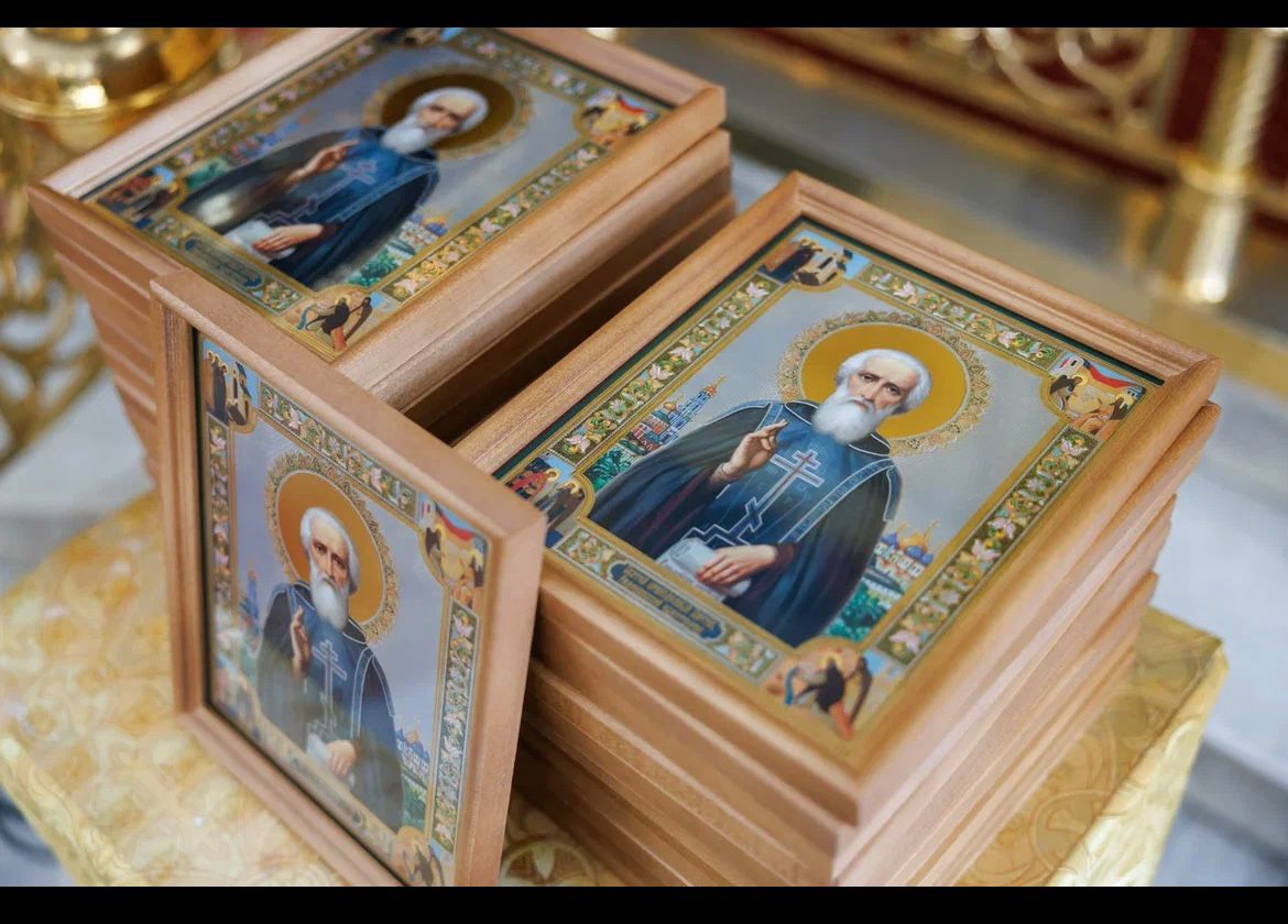 В завершение молебна в благословение от Владыки Кирилла собравшимся передали иконы с образом преподобного Сергия Радонежского, покровителя русского воинства, и памятные подарки от городской администрации, после чего была сделана общая фотография.