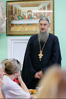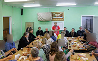 После богослужения родственники участников СВО были приглашены в здание причта на чаепитие. К диалогу с ними присоединились вр.и.о. главы Сергиево-Посадского г.о. Оксана Ероханова и социальный координатор представительства государственного фонда «Защитники Отечества» в Сергиево-Посадском г.о. Светлана Смирнова. За чаепитием проходила беседа на животрепещущие темы, обсуждались актуальные вопросы помощи военнослужащим и их семьям, люди делились личными историями и происходившими на фронте чудесами.