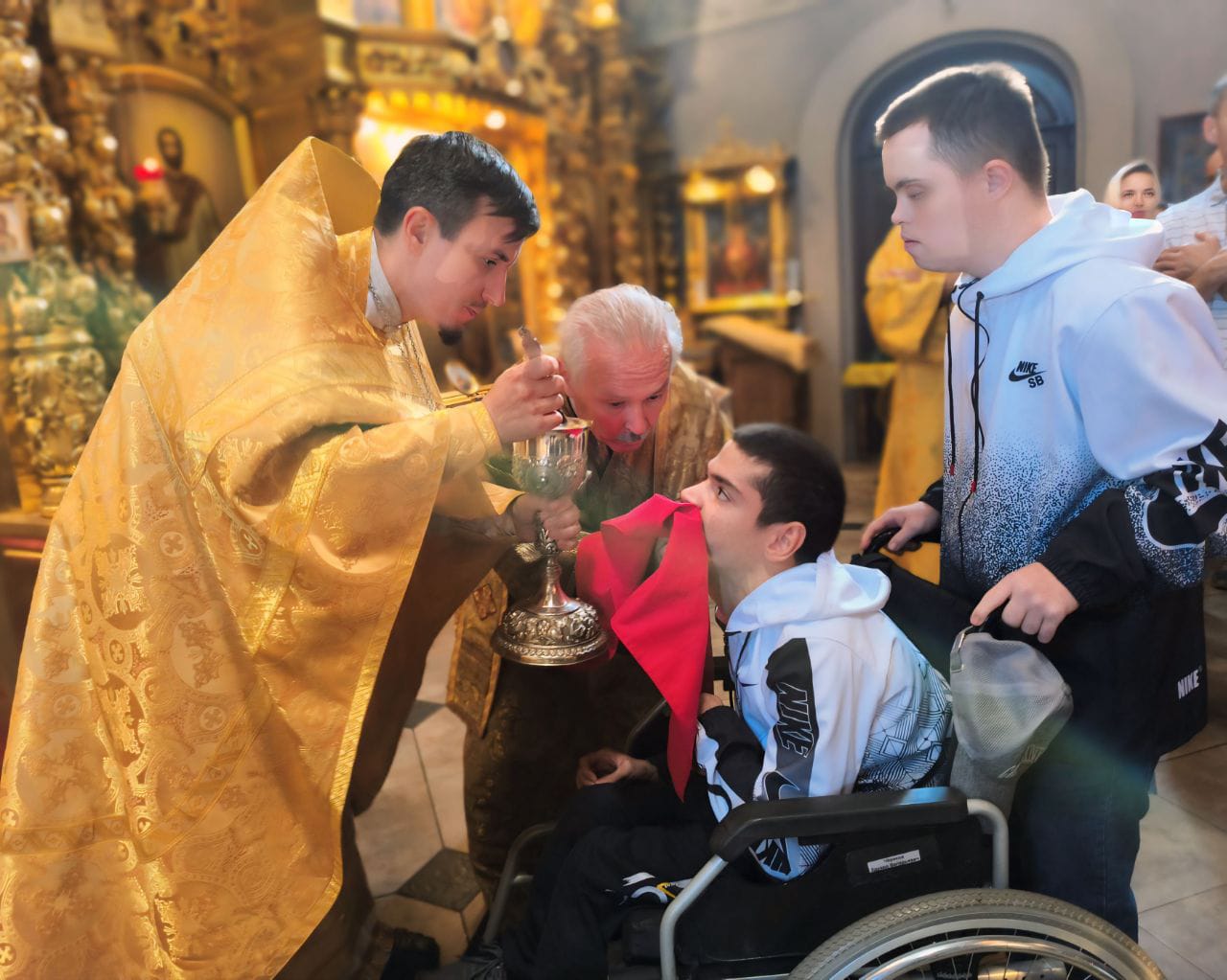 14 сентября 2024 года храм св. мученика Уара поселка Вешки Мытищинского г.о. вновь посетили воспитанники ГБСУ СО МО «Куровской психоневрологический интернат» Орехово-Зуевского района Московской области. Это не первый приём, организованный прихожанами для ребят, всегда с радостью они едут в храм, где их с теплом встречают как дорогих гостей. Ребята молились, поисповедовались и причастились Святых Христовых Тайн за Божественной литургией. Далее был отслужен молебен на Церковное новолетие.
