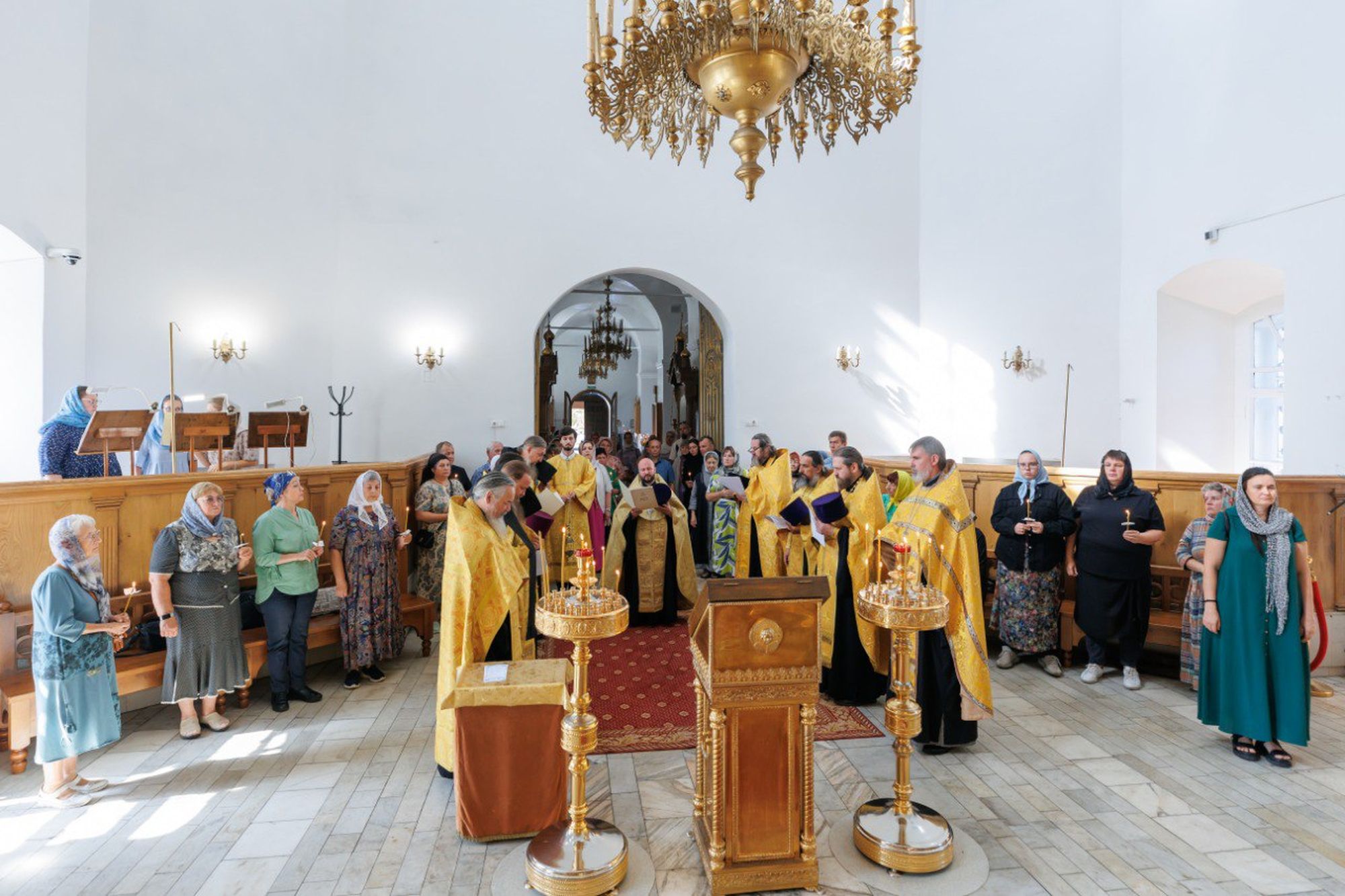 В Успенском городском соборе собрались более пятидесяти жён, сестёр и матерей защитников Отечества из Подмосковья. Молебен о здравии и благополучии военнослужащих, а также панихиду о погибших воинах совершил Межъепархиальный ответственный Московской митрополии по вопросам семьи, защиты материнства и детства протоиерей Андрей Коробков в сослужении: