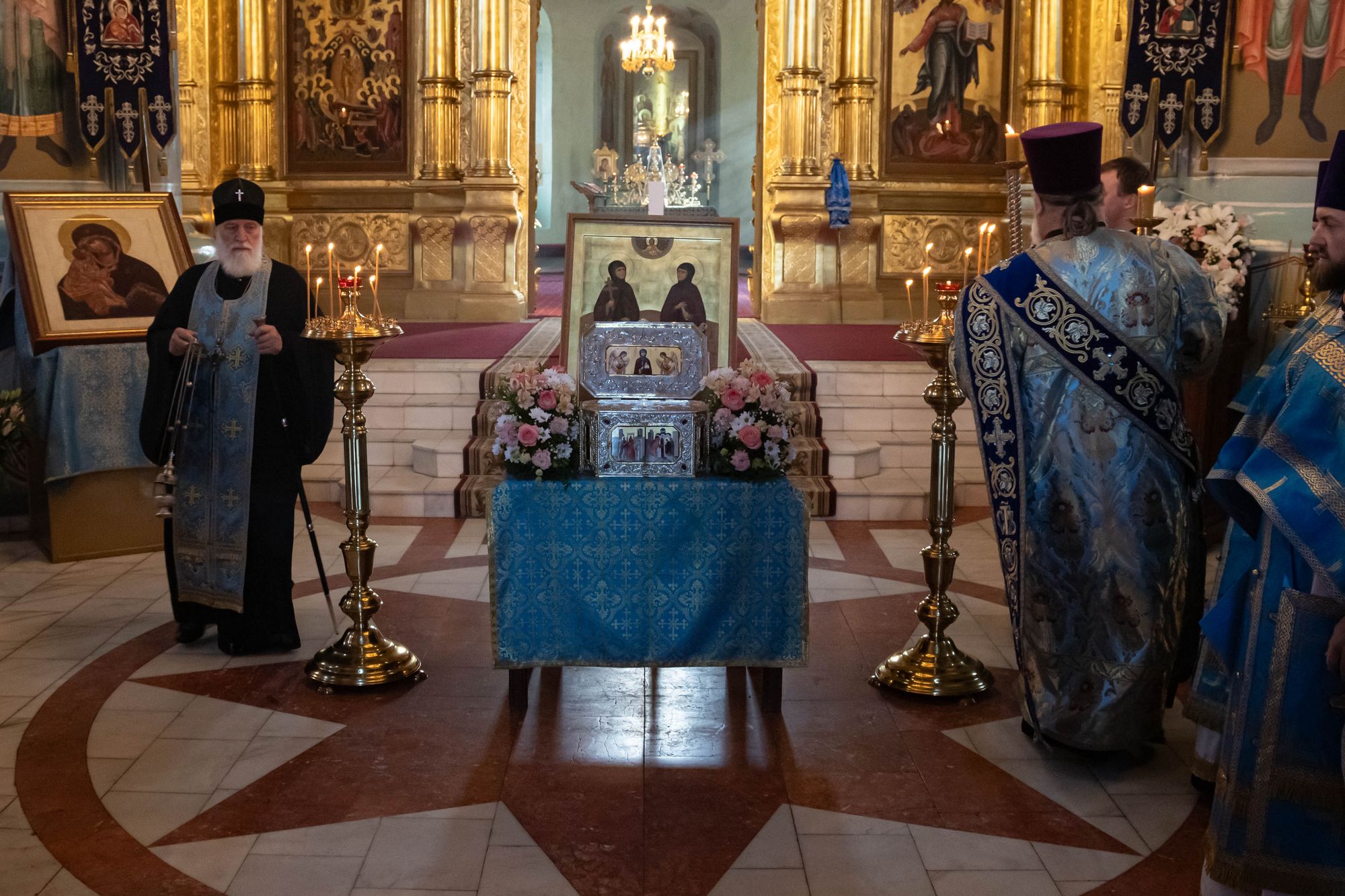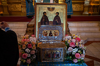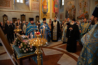 Владыка Павел возглавил славление преподобной Евфросинии, после чего секретарь епархиального управления в сослужении отцов благочинных возглавил служение Божественной литургии.