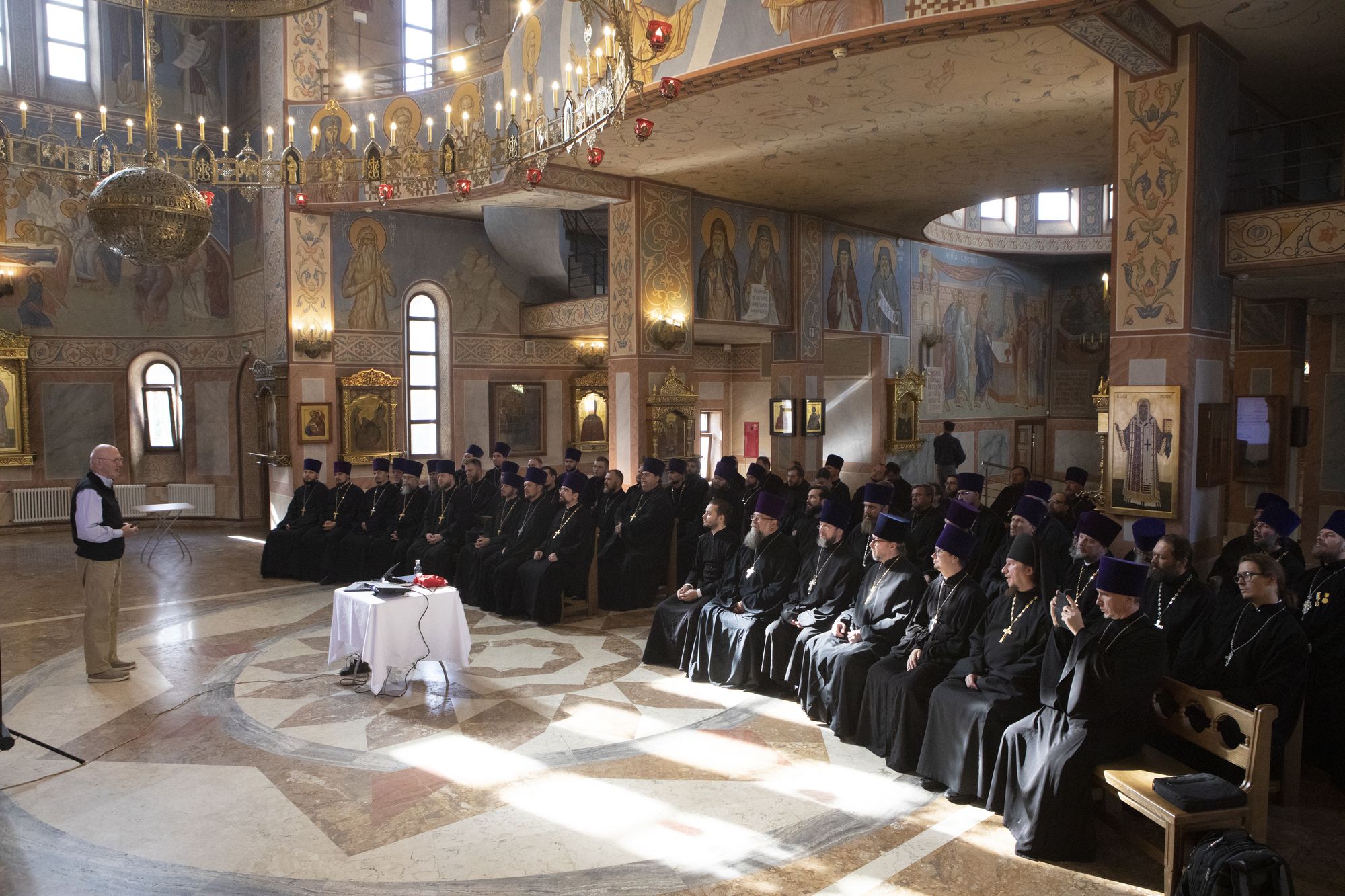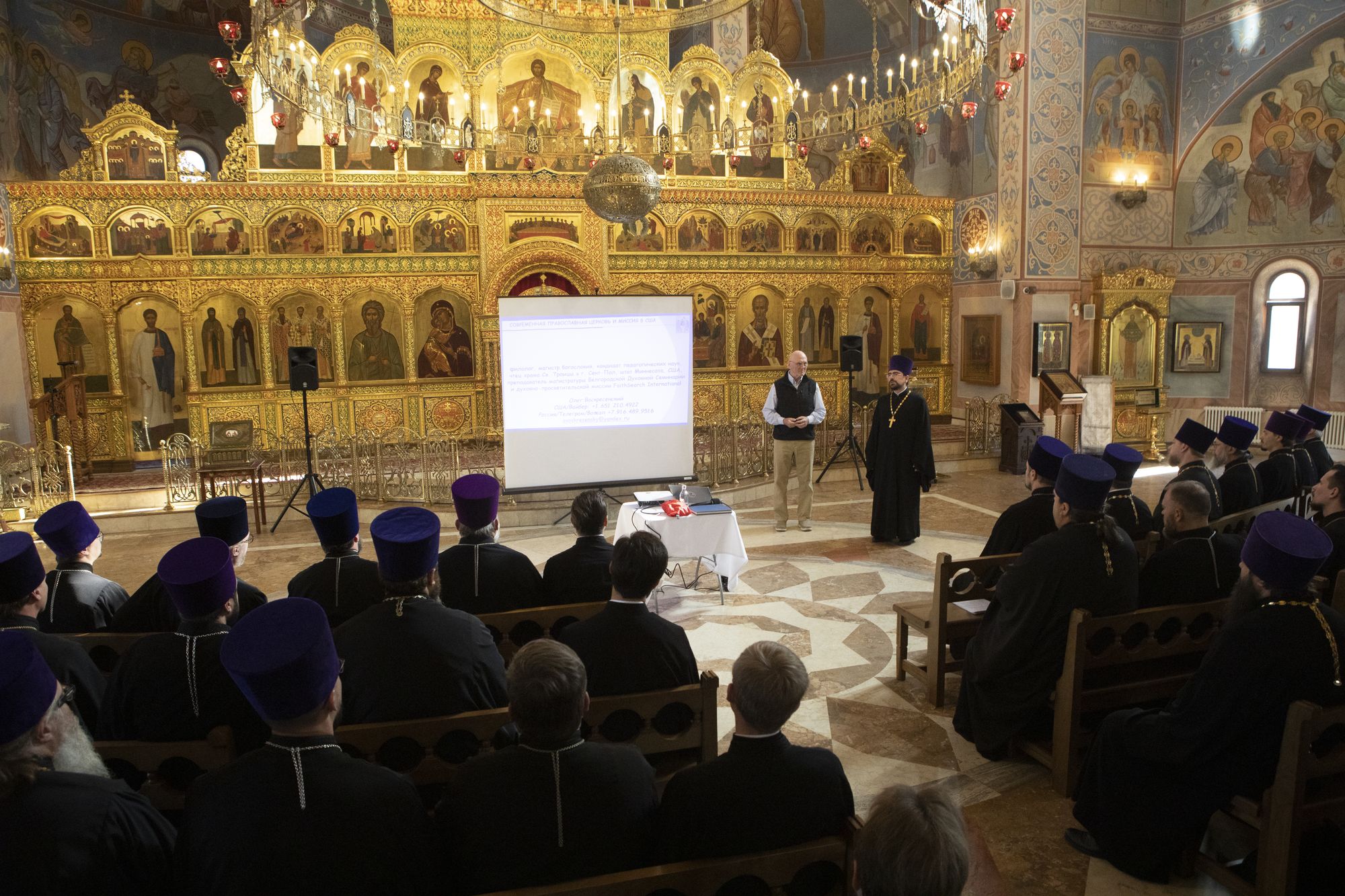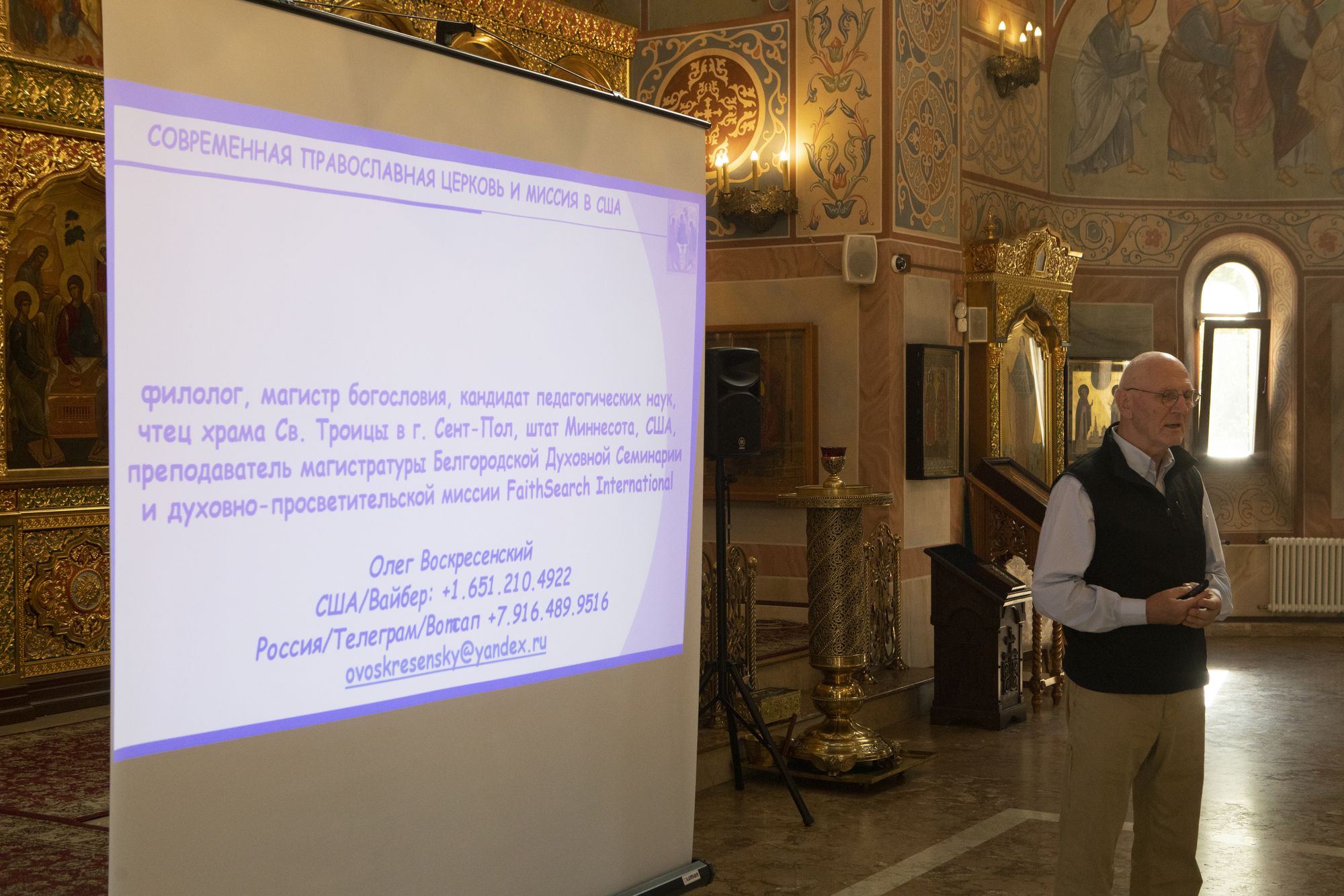 В начале встречи магистр богословия миссионер Олег Владиславович Воскресенский провёл пастырский семинар на тему «Современная Православная Церковь в США».
