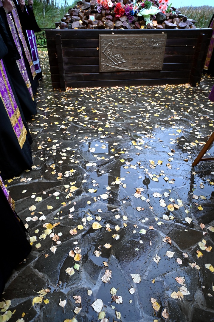 После молебна была проведена краткая заупокойная лития в память о всех невинных жертвах и работниках Дмитровлага, строителях канала имени Москвы, которые были невинно убиты или пострадали в ходе тяжелых работ. Во время заупокойных молитв также вспомнили Юрия Палкина — главного благодетеля, участвовавшего в сооружении поклонного Креста.