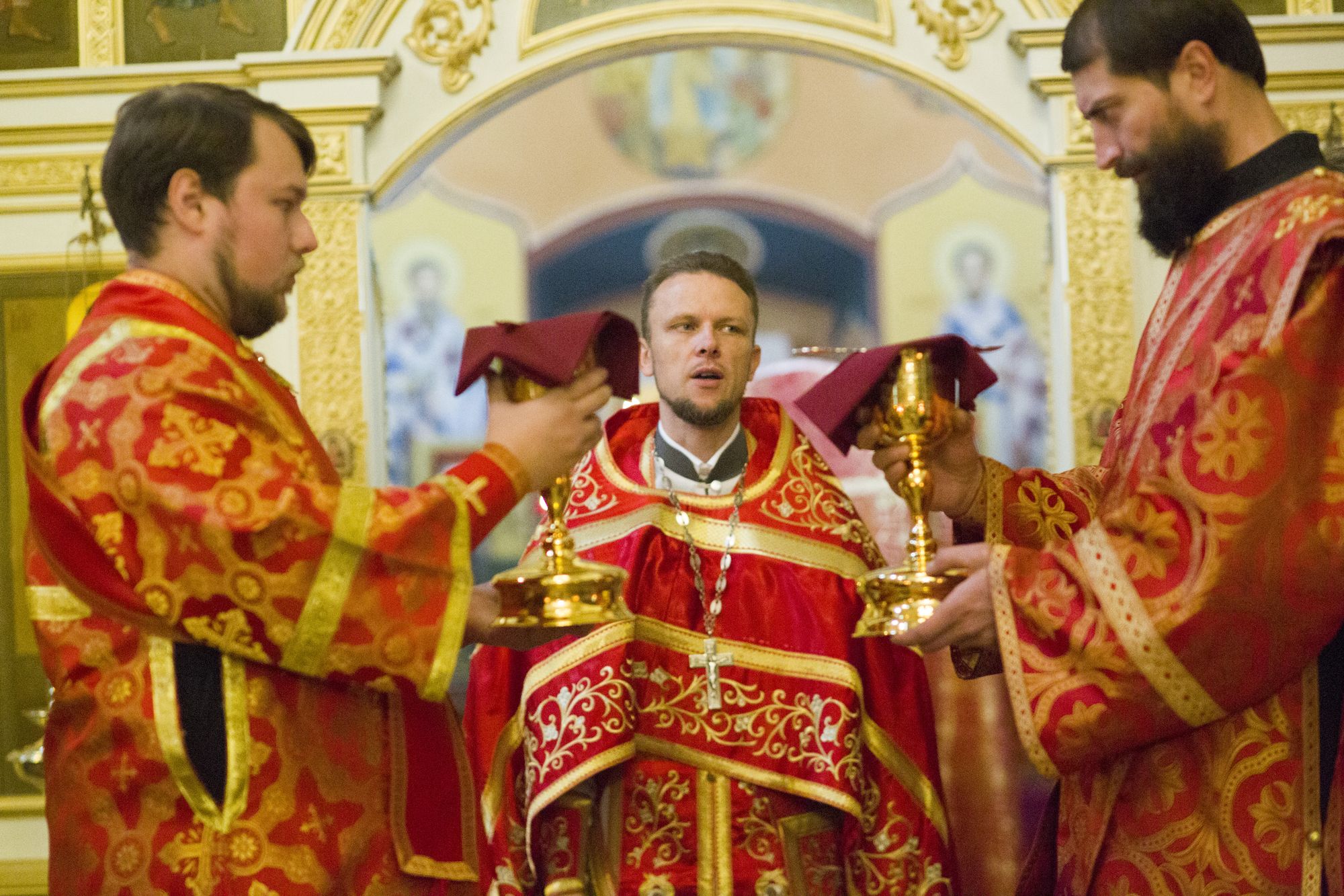 Диаконское служение совершили диакон храма святого равноапостольного князя Владимира при Московском президентском кадетском училище им. М.А. Шолохова войск национальной гвардии РФ в Кузьминках Александр Шмат и диакон Михайло-Архангельского собора г. Бронницы Даниил Ганьшин.