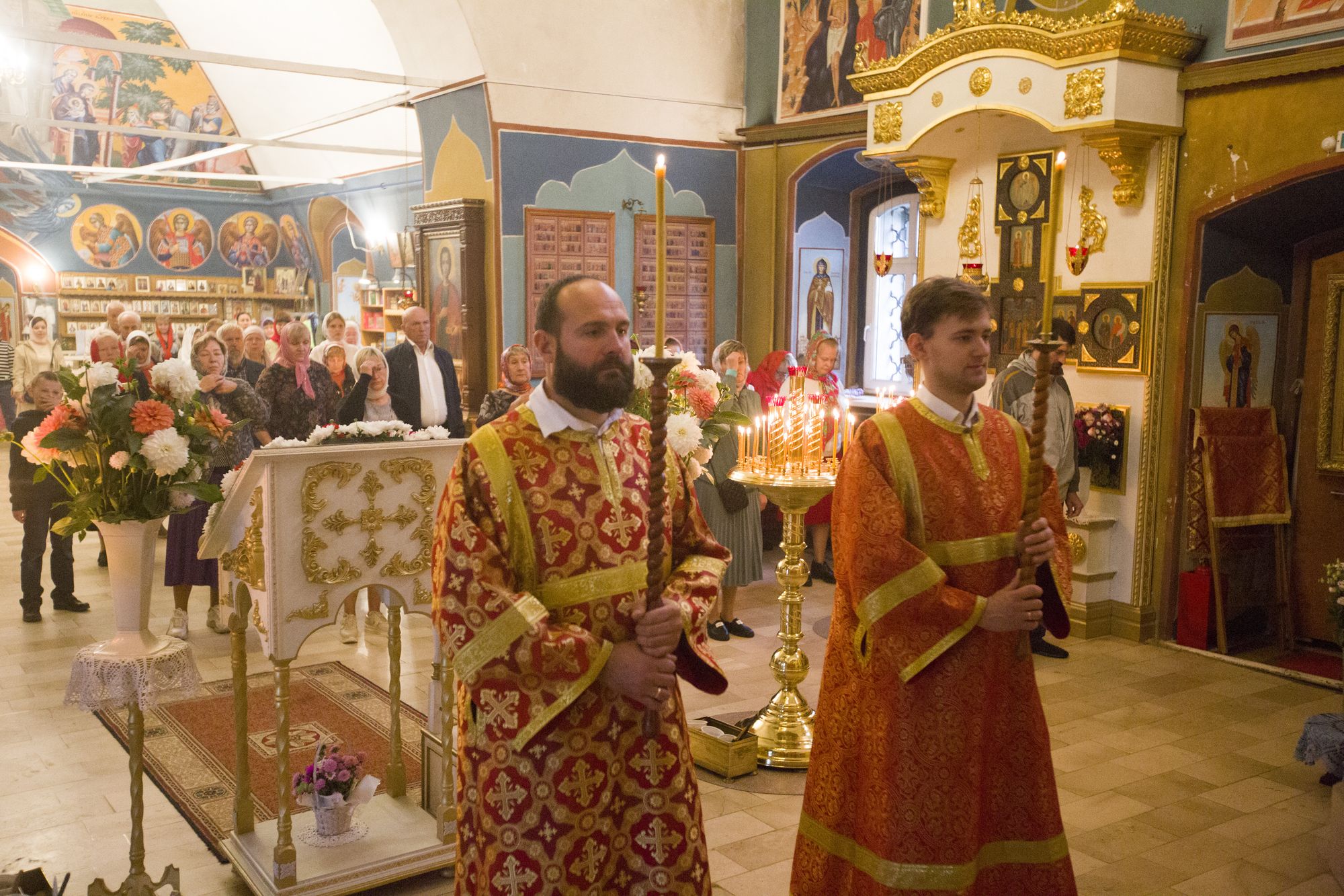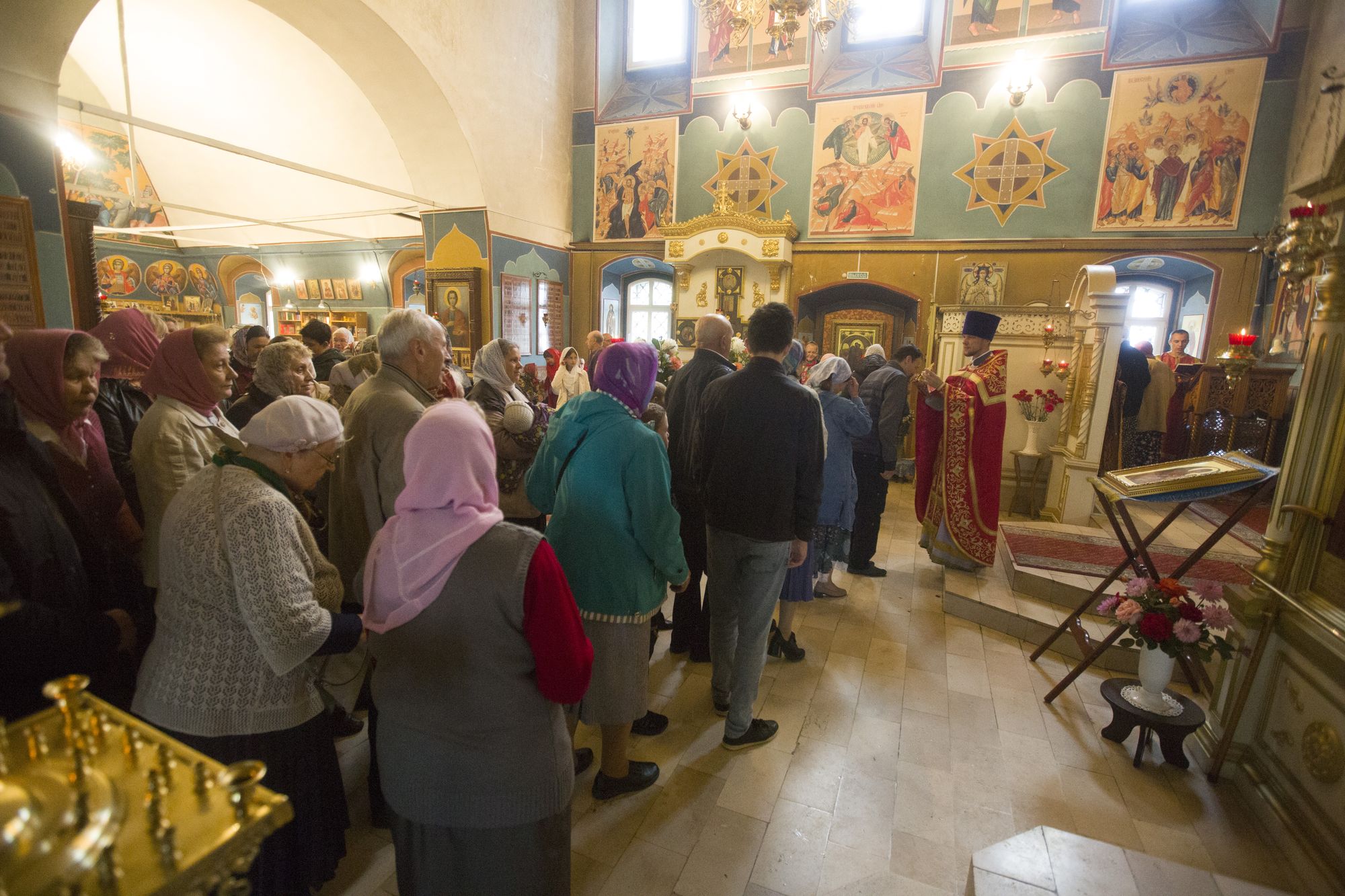Несмотря на дождливый день, храм наполнился прихожанами. За богослужением молились директор территориального управления «Софьинское» Наталия Александровна Иванова, заместитель директора управления Александр Евгеньевич Вербенко, жители с. Софьино и других близлежащих поселений.
