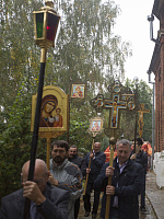 По окончании Литургии состоялся крестный ход вокруг храма и славление перед иконой великомученика Никиты.