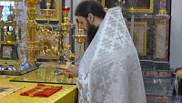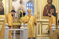 Его Преосвященству сослужили благочинный монастырей Балашихинской епархии, настоятель обители игумен Евмений (Лагутин), настоятель Спасо-Преображенского Гуслицкого монастыря игумен Серафим (Голованов) и насельники обители в священном сане.