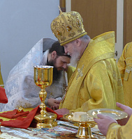 За Литургией насельник Николо-Берлюковской пустыни иеродиакон Григорий (Краснов) был рукоположен во пресвитера.