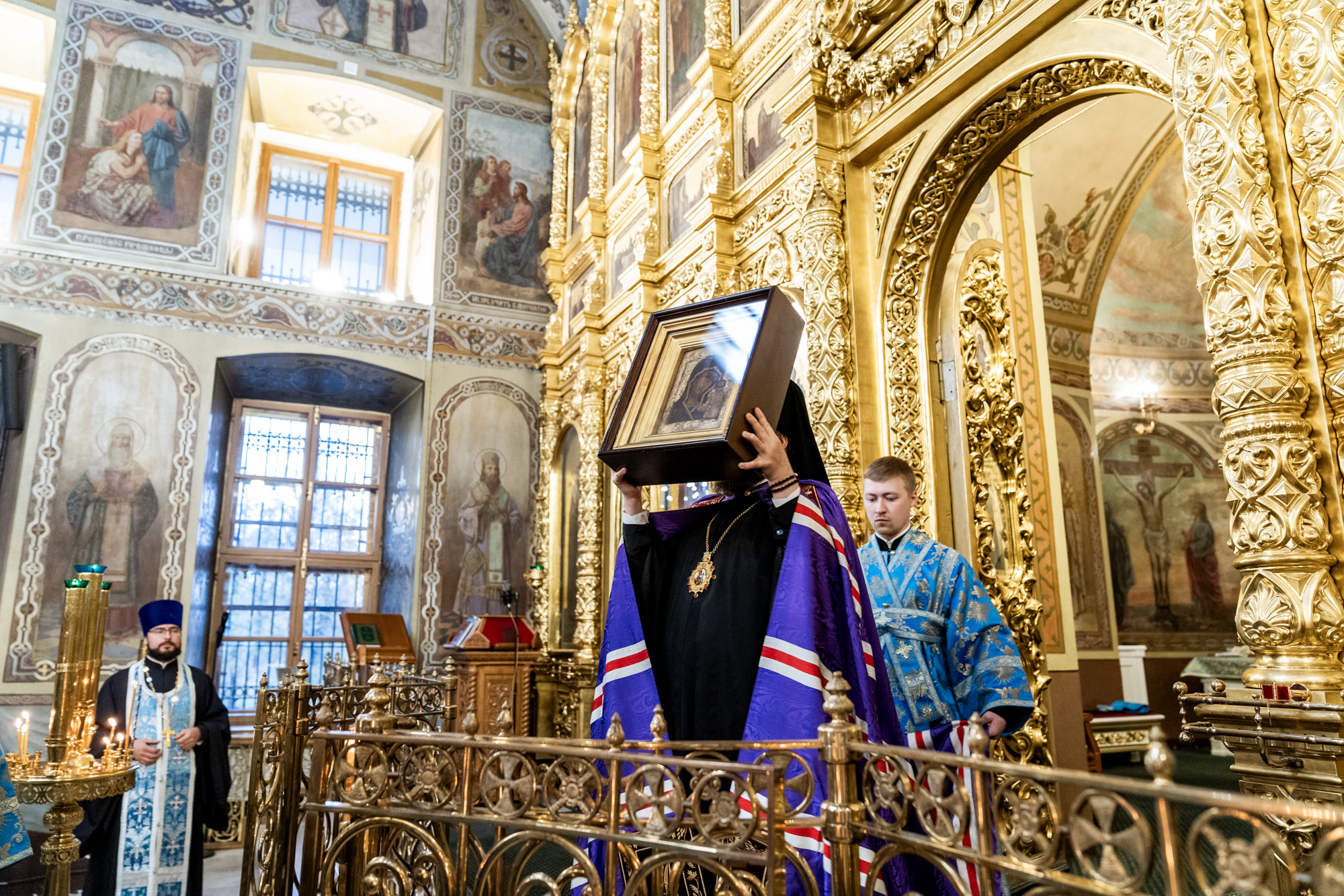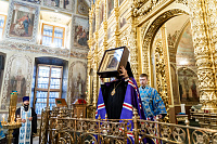 Его Высокопреосвященству сослужили сопровождающий святыню иерей Константин Быков и клирики Подольской епархии.