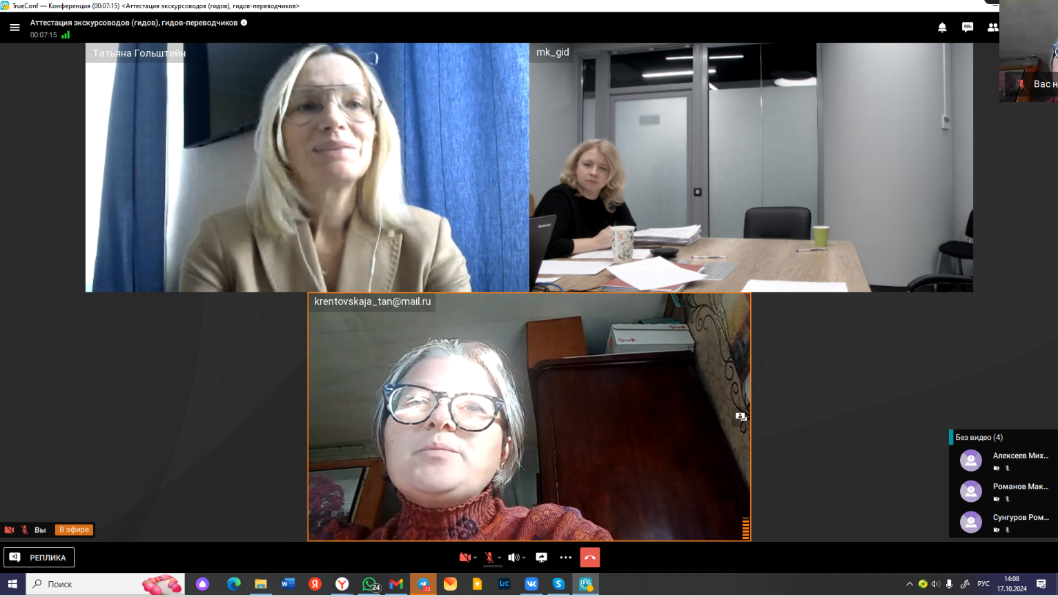 17 октября 2024 года в режиме видеоконференцсвязи состоялось очередное заседание аттестационной комиссии экскурсоводов (гидов) и гидов-переводчиков, осуществляющих деятельность на территории Московской области.
