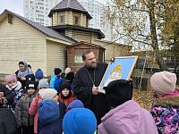 18 октября в рамках предметной недели по "Основам православной культуры" и "Духовного краеведения Подмосковья", которая проводится в этом году по теме "80-летие Великой Победы: память и духовный опыт поколений", во 2 «А» классе школы №32 г.Подольска прошло торжественное внеклассное мероприятие. Ребята рассказали стихи и исполнили песни о войне, вместе с учителем Щегловой И.И. разработали экскурсионный маршрут "Святая память поколений" по улицам микрорайона Кузнечики городского округа Подольск и отправились на экскурсию по улице "Бульвар 65-летия Победы". У стелы "Населенный пункт воинской доблести" дети возложили цветы в память о героической борьбе подольчан в годы Великой Отечественной войны. А на площади Защитников Отечества второклассники посетили Никольский храм. Настоятель храма иерей Алексей Суриков рассказал ребятам и их родителям об истории храма. В дар храму обучающиеся приготовили творческую поделку.