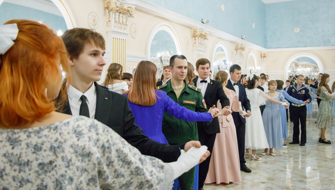 Далее в ходе двух отделений бала юноши и девушки под руководством ведущей Маргариты Рахманько разучивали танцевальные движения и фигуры, а затем танцевали под звуки вальса, марша и польки.