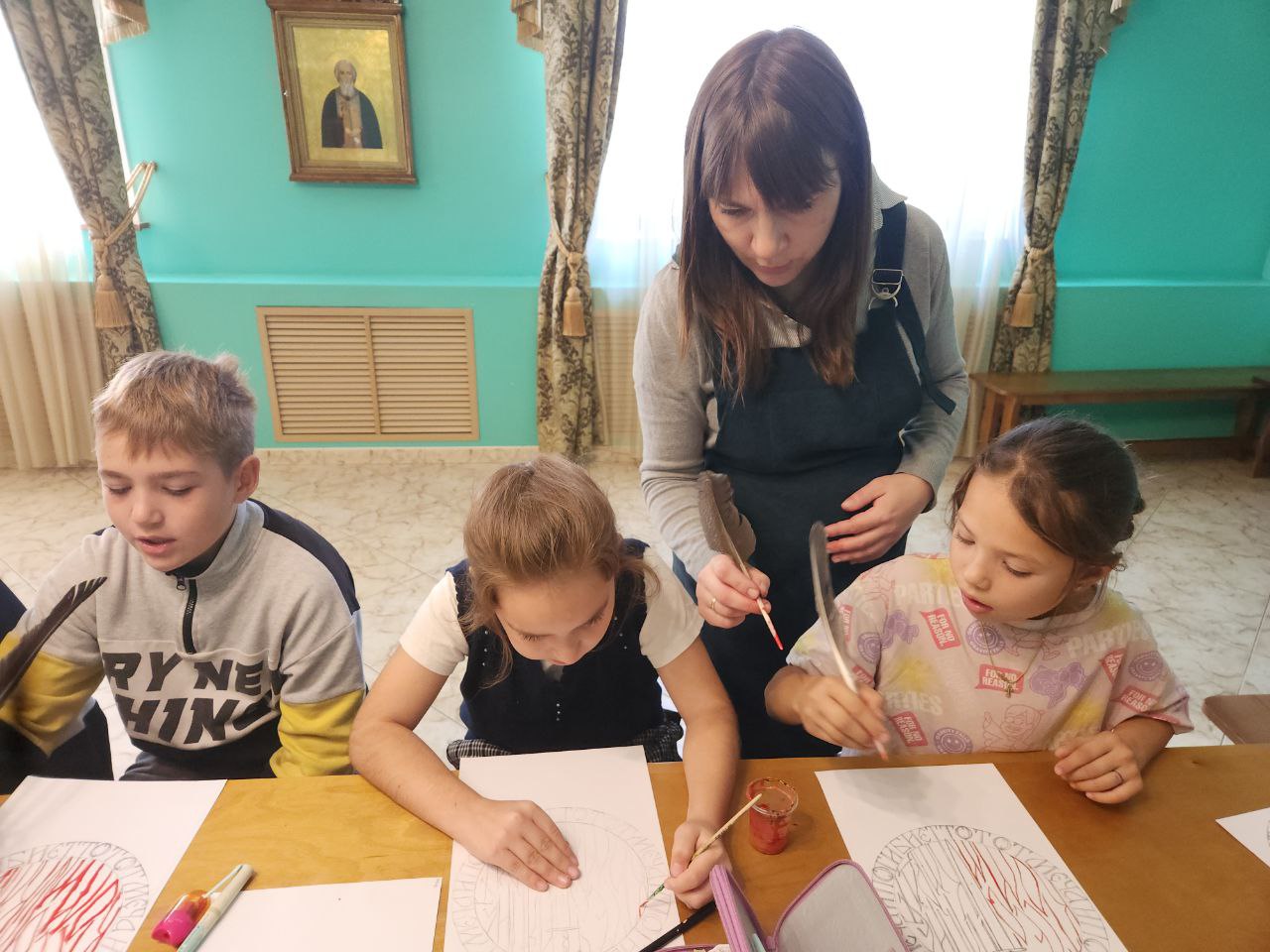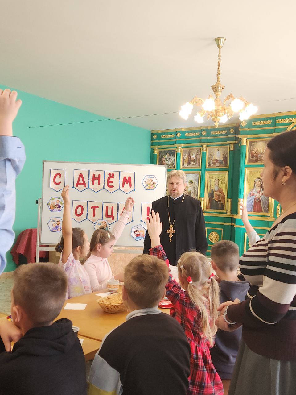 В воскресной школе состоялись тематические занятия, во время которых учащиеся подготовили памятные открытки. Благочинный 1-го Егорьевского округа протоиерей Сергий Кожевников рассказал ребятам об истории праздника.