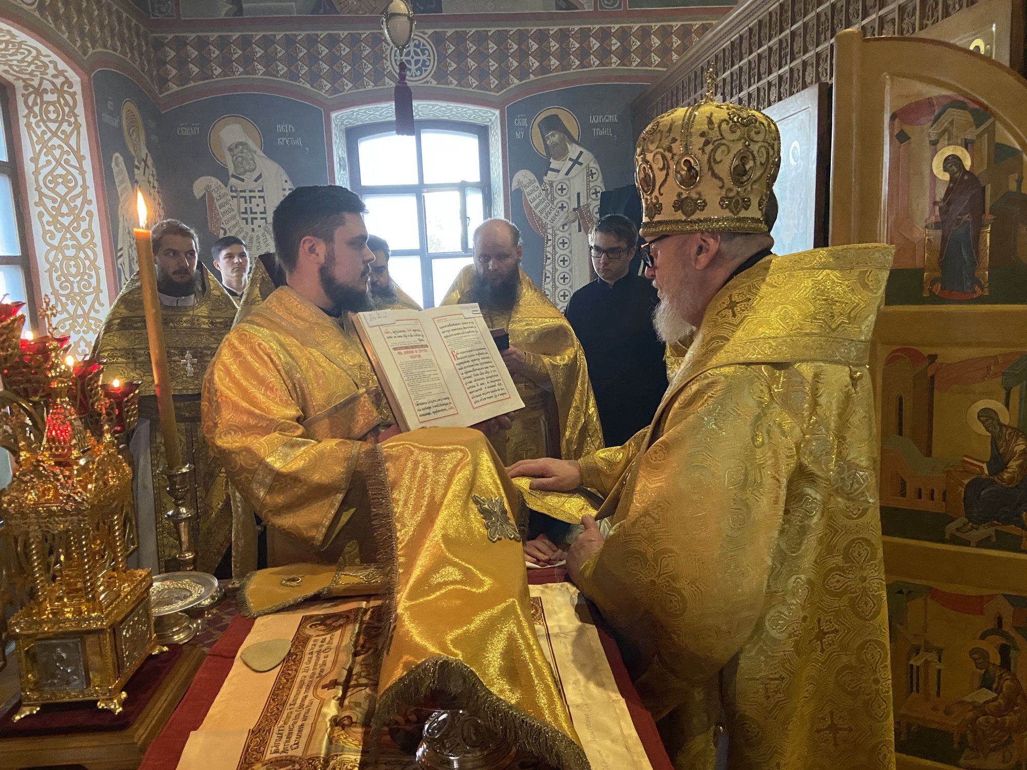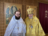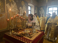 За Литургией насельник обители иеродиакон Нектарий (Барский) был рукоположен во пресвитера.