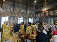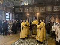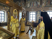 Его Преосвященству сослужили благочинный монастырей Балашихинской епархии игумен Евмений (Лагутин), настоятель монастыря игумен Серафим (Голованов), благочинный Ликино-Дулёвского церковного округа священник Антоний Рыжаков и духовенство обители.