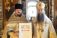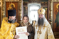 Затем епископ Кирилл обратился к молящимся со словами напутствия и вручил Патриаршие и епархиальные награды.